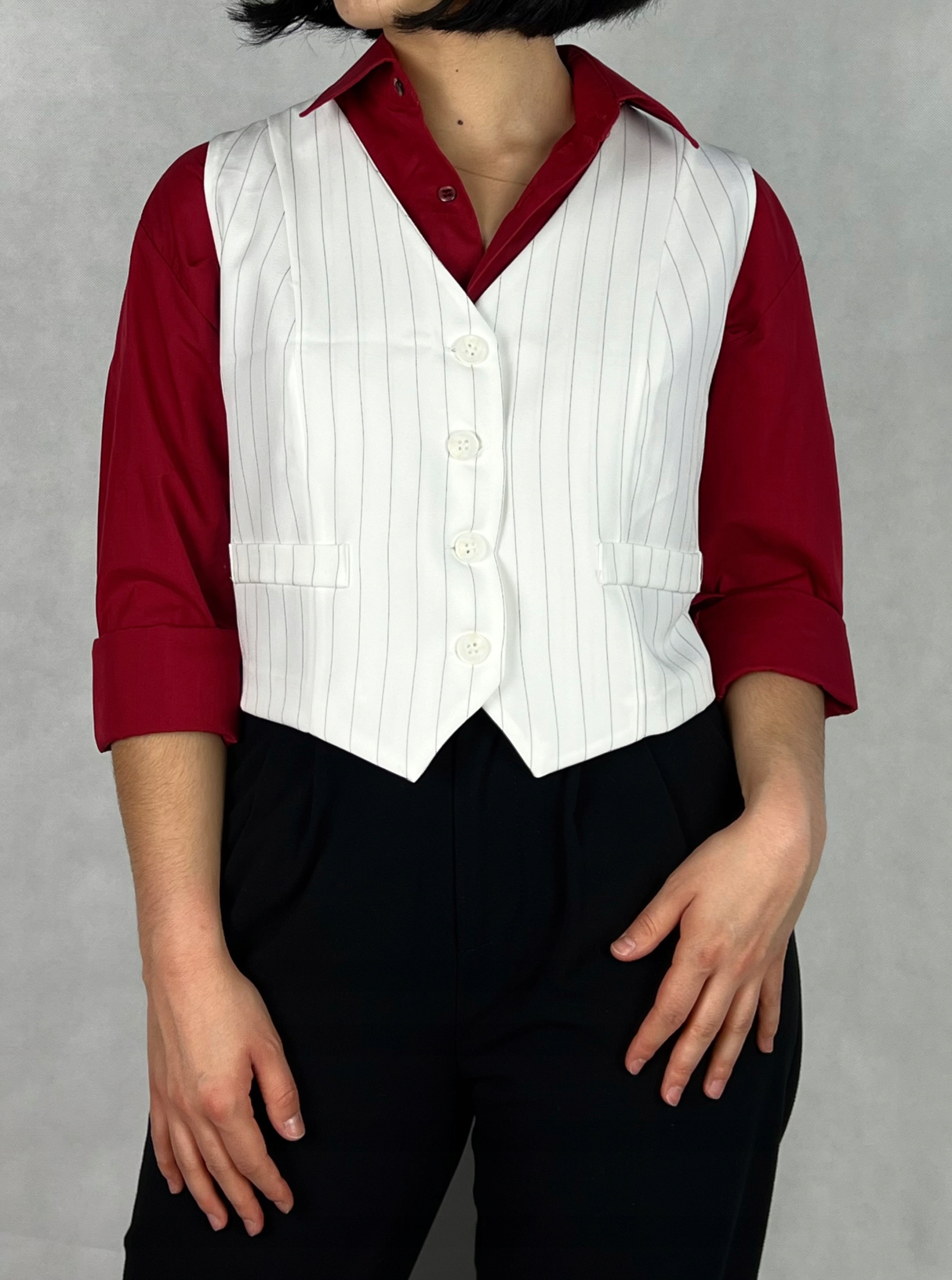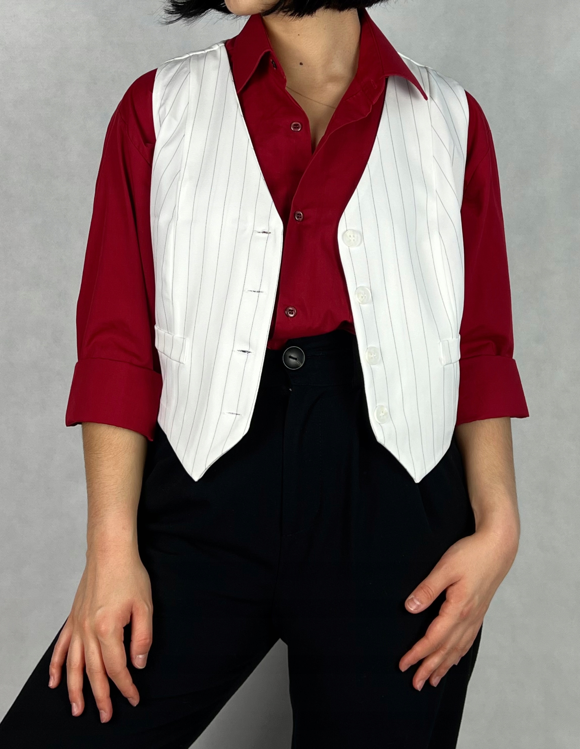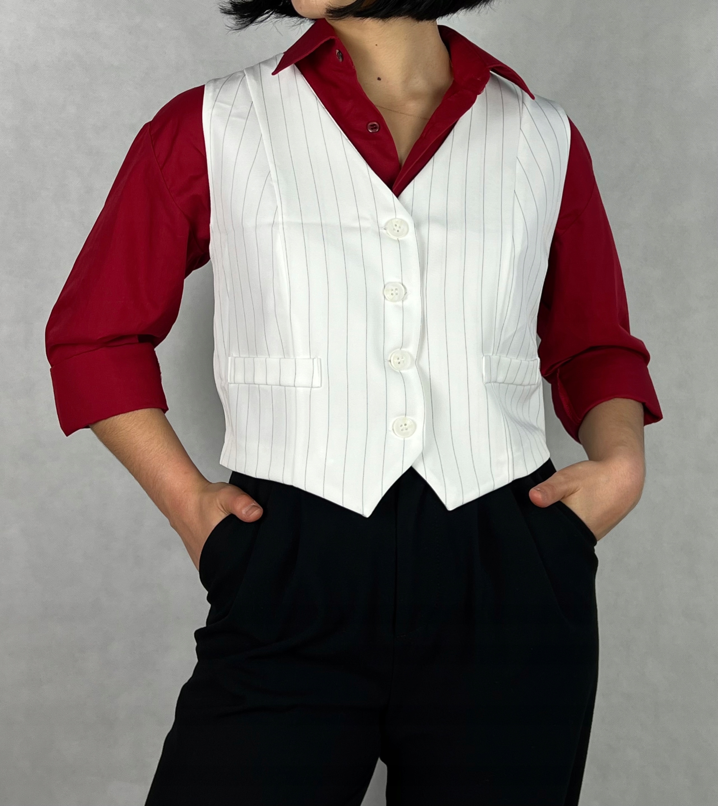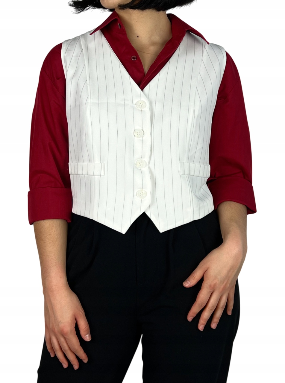 Elegancka damska kamizelka garniturowa, z podszewką, to wyrafinowany dodatek, który podkreśli Twój styl i doda szyku każdej stylizacji. Jest zapinana na guziki, co pozwala na wygodne noszenie i idealne dopasowanie. Dwie listewkowe kieszenie dodają jej klasycznego, garniturowego charakteru. Kamizelka świetnie sprawdzi się zarówno w eleganckich, jak i smart-casualowych zestawieniach, idealnie komponując się z koszulami lub bluzkami. To ponadczasowy element garderoby, który łączy w sobie wygodę i wyjątkowy styl. 77% poliester, 18% wiskoza, 5% elastan.