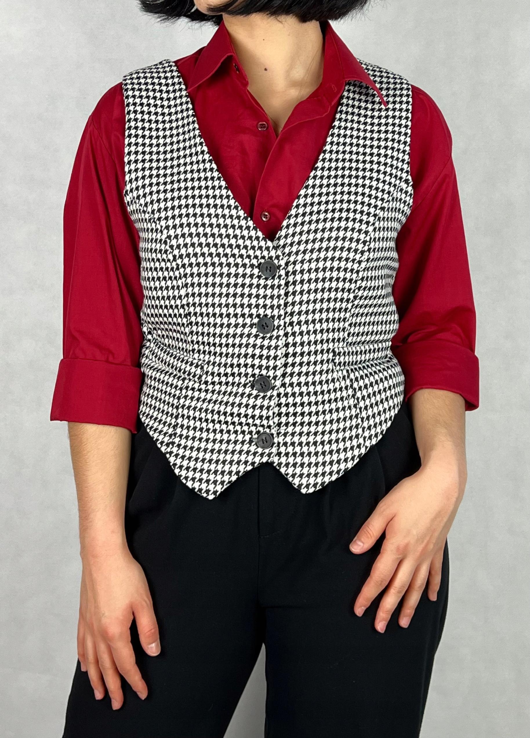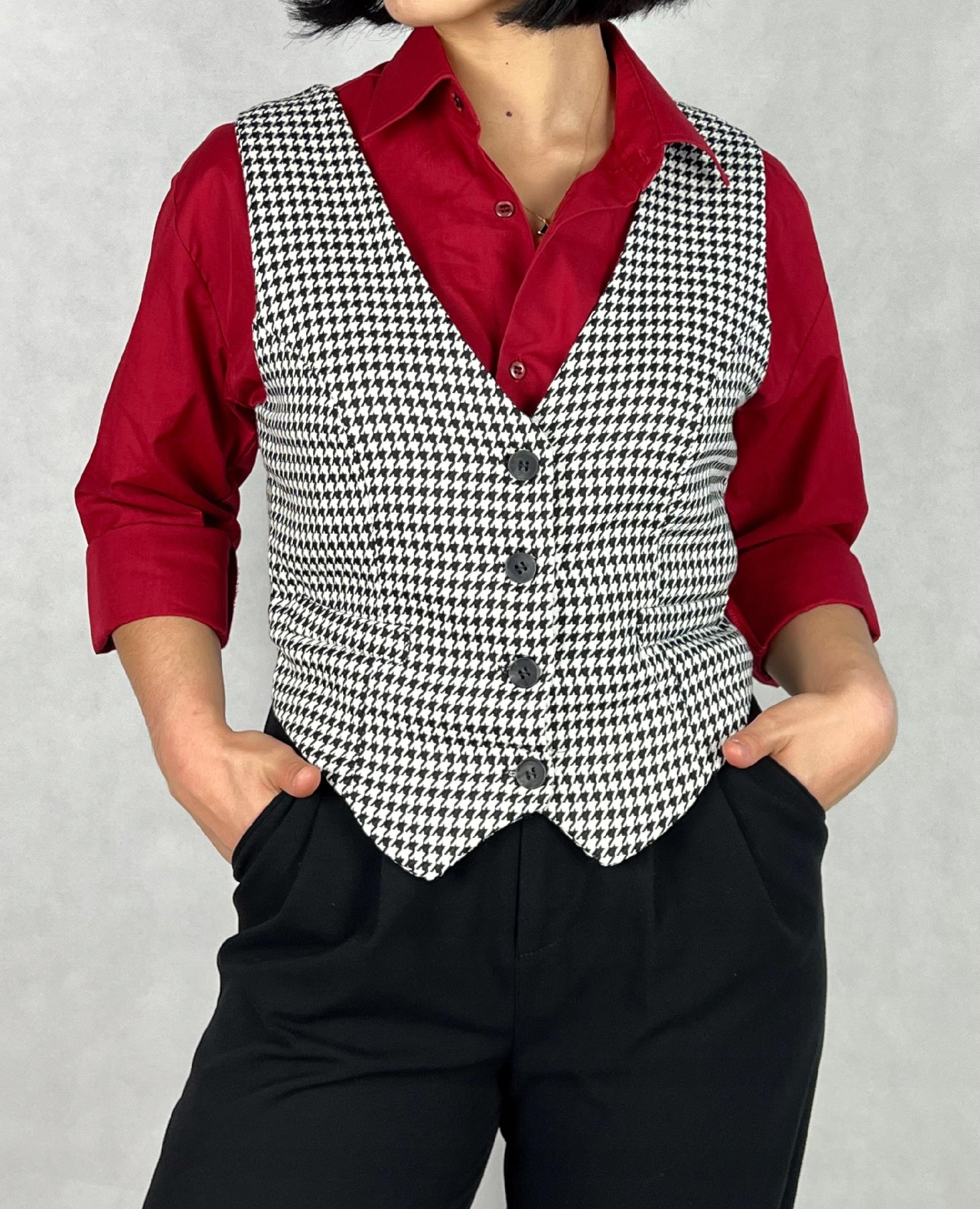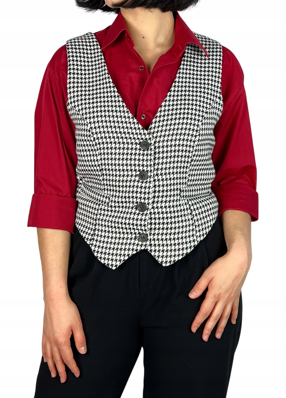 Elegancka damska kamizelka garniturowa, z podszewką, to wyrafinowany dodatek, który podkreśli Twój styl i doda szyku każdej stylizacji. Jest zapinana na guziki, co pozwala na wygodne noszenie i idealne dopasowanie. Dwie listewkowe kieszenie dodają jej klasycznego, garniturowego charakteru. Kamizelka świetnie sprawdzi się zarówno w eleganckich, jak i smart-casualowych zestawieniach, idealnie komponując się z koszulami lub bluzkami. To ponadczasowy element garderoby, który łączy w sobie wygodę i wyjątkowy styl. 77% poliester, 18% wiskoza, 5% elastan.