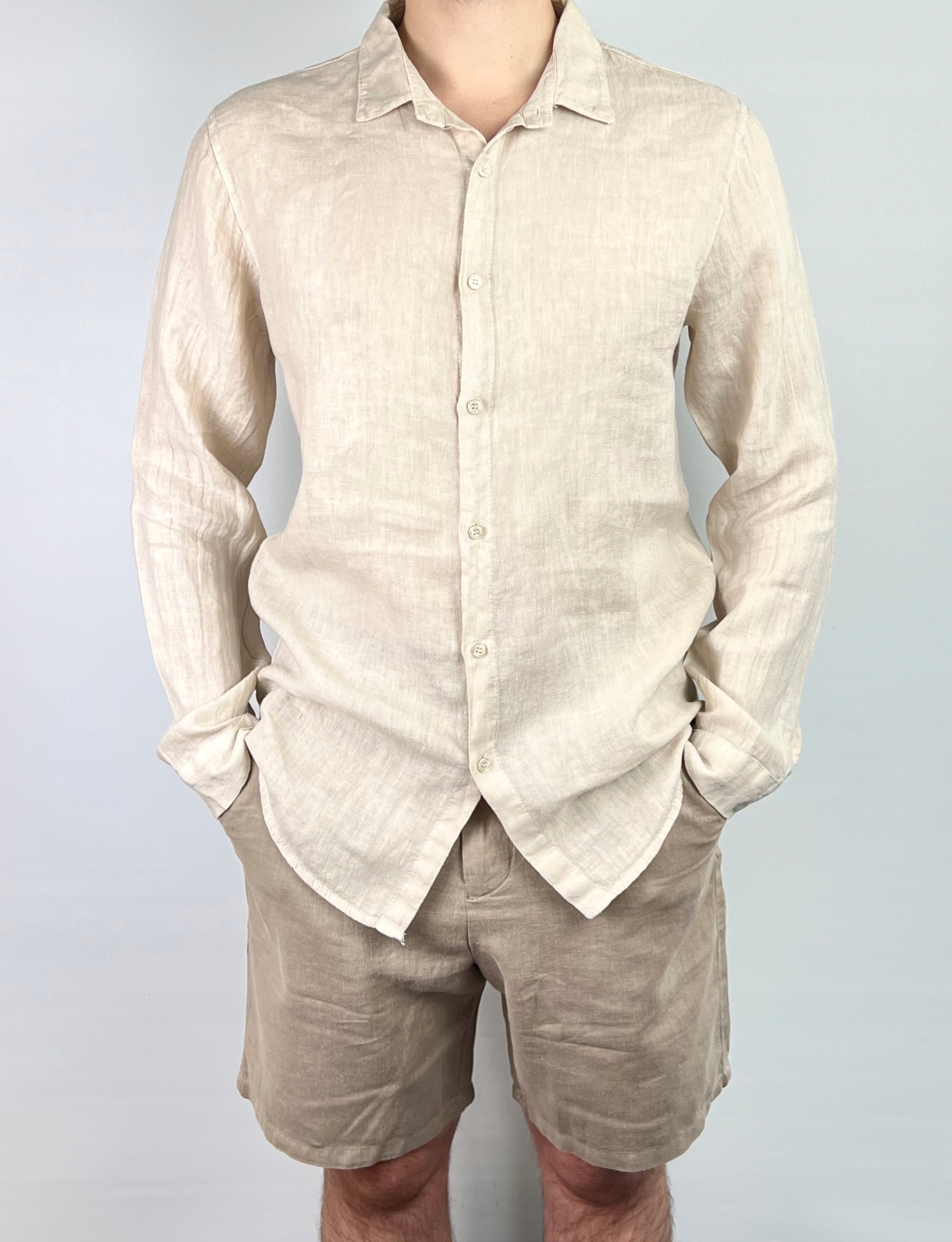 Koszula męska lniana z długim rękawem, rozmiar L