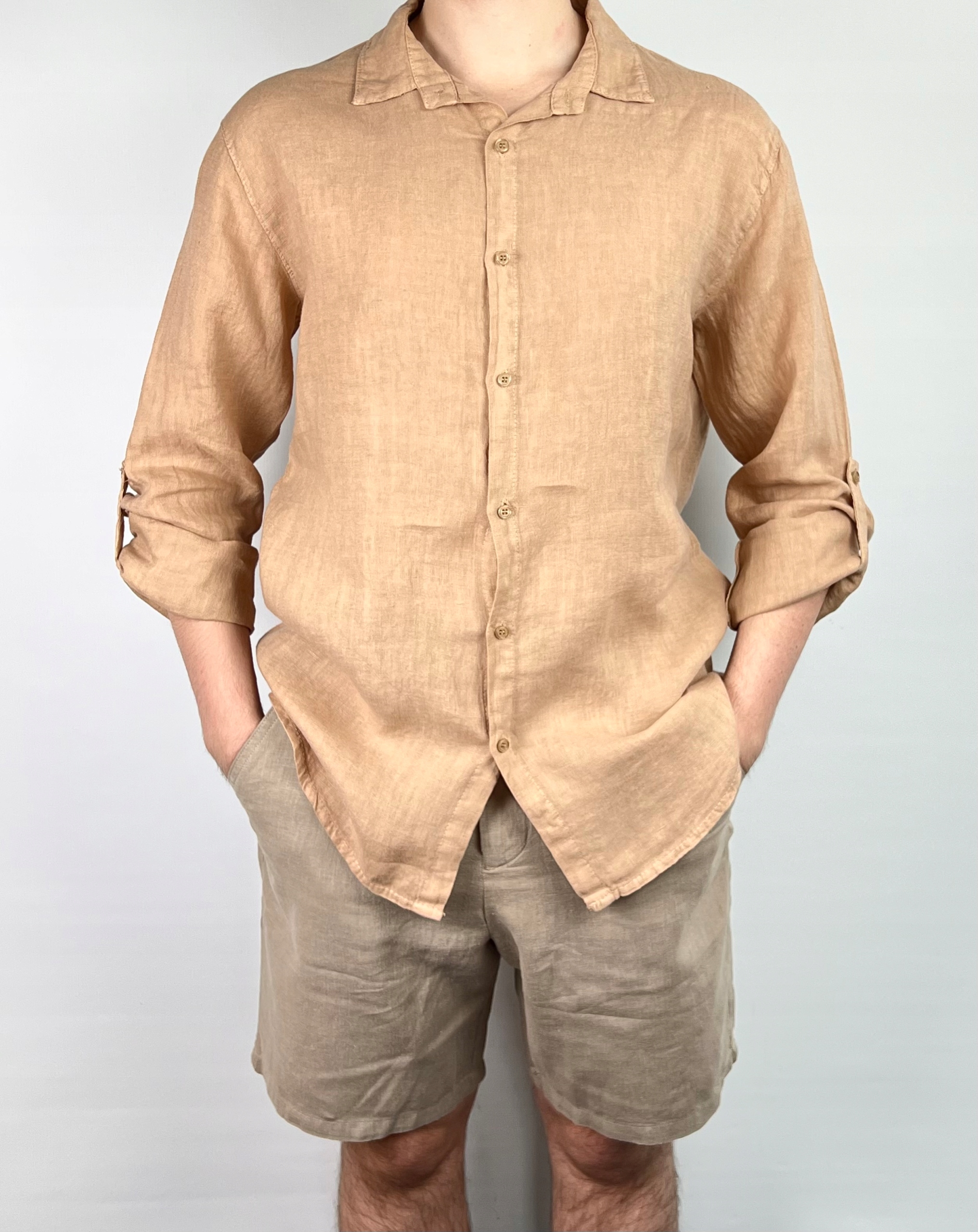Męska koszula lniana z podwijanymi rękawami to klasyczna propozycja dla mężczyzn ceniących naturalne tkaniny i swobodny styl. Wykonana z wysokiej jakości lnu, zapewnia przewiewność i komfort nawet w cieplejsze dni. Regularny fason sprawia, że koszula dobrze układa się na sylwetce, nie krępując ruchów i podkreślając męską sylwetkę w naturalny sposób. Idealnie sprawdzi się na co dzień – zarówno do pracy, jak i w czasie wolnym – w zestawieniu z chinosami, jeansami czy szortami. Uniwersalny, casualowy styl czyni z niej praktyczny element garderoby, który łatwo dopasować do różnych okazji. Starannie dobrany materiał nie tylko dobrze wygląda, ale również wpływa na trwałość i wygodę użytkowania. Koszula łączy w sobie klasykę z nowoczesnym podejściem do codziennej mody męskiej. 100% len.