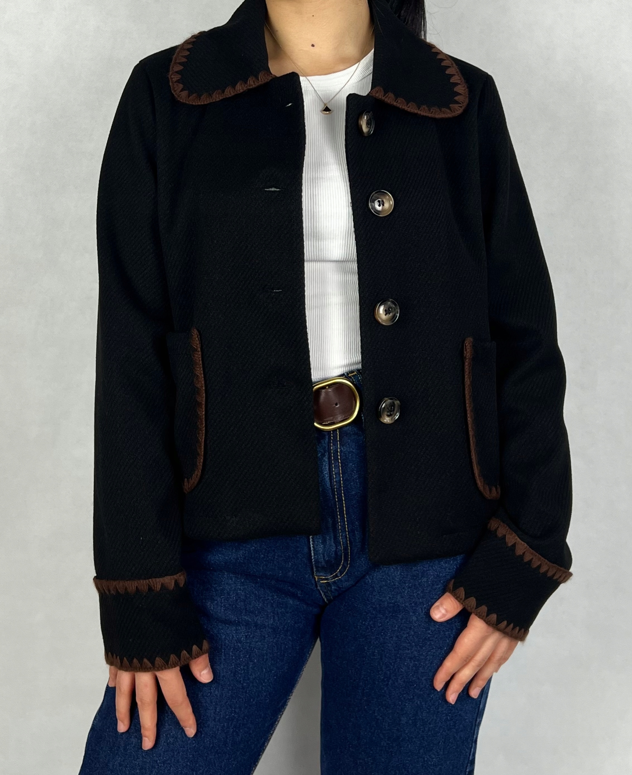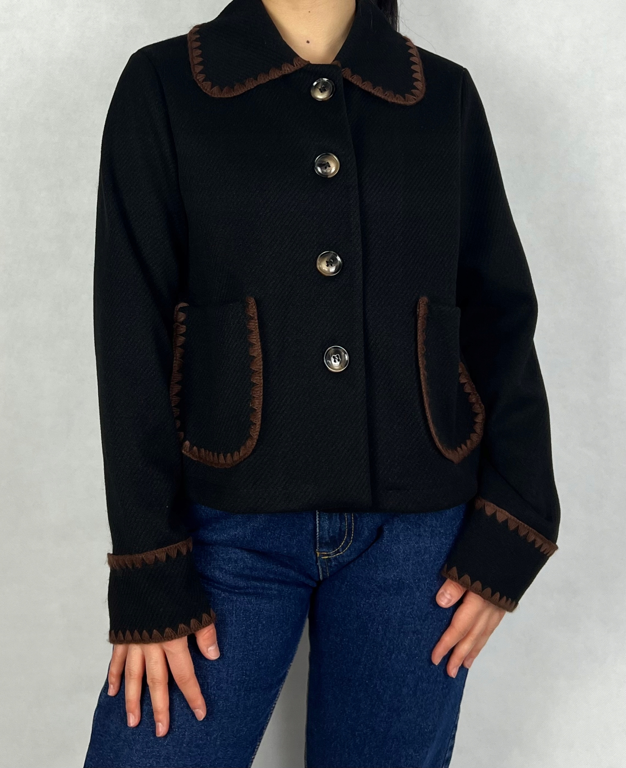 Lekka, damska kurtka wełniana to idealne połączenie klasy i wygody. Wykonana z wysokiej jakości naturalnej wełny, zapewnia delikatne ciepło i komfort noszenia, jednocześnie pozostając przewiewną. Prosty krój z eleganckim kołnierzem nadaje jej uniwersalnego charakteru, który sprawdzi się zarówno na co dzień, jak i na wyjątkowe okazje. Hafty zdobiące kurtkę dodają jej unikalnego uroku. Ta wyjątkowa kurtka to niezastąpiony element garderoby na sezon przejściowy, który podkreśli Twój indywidualny styl. 30% wełna, 70% wiskoza.