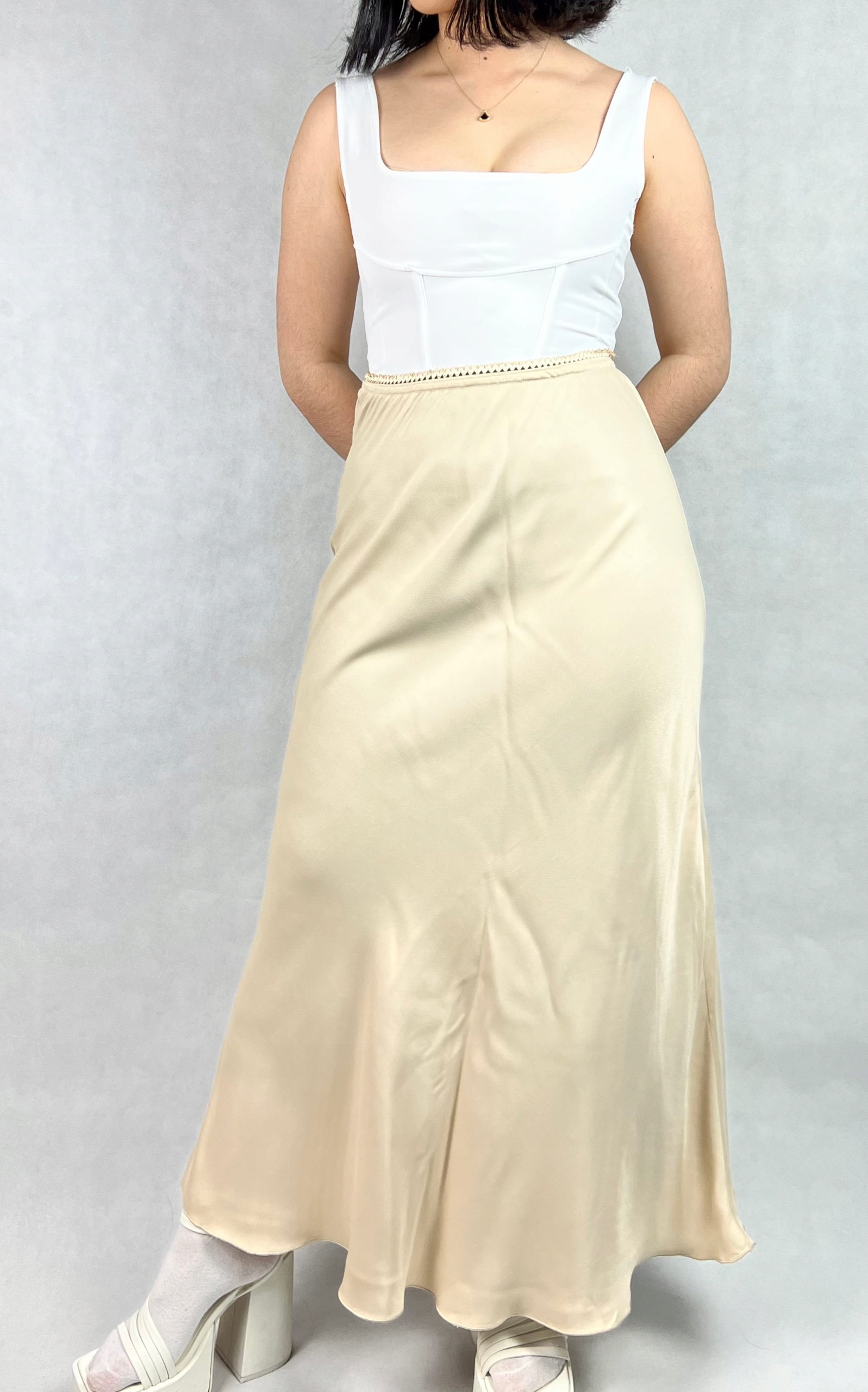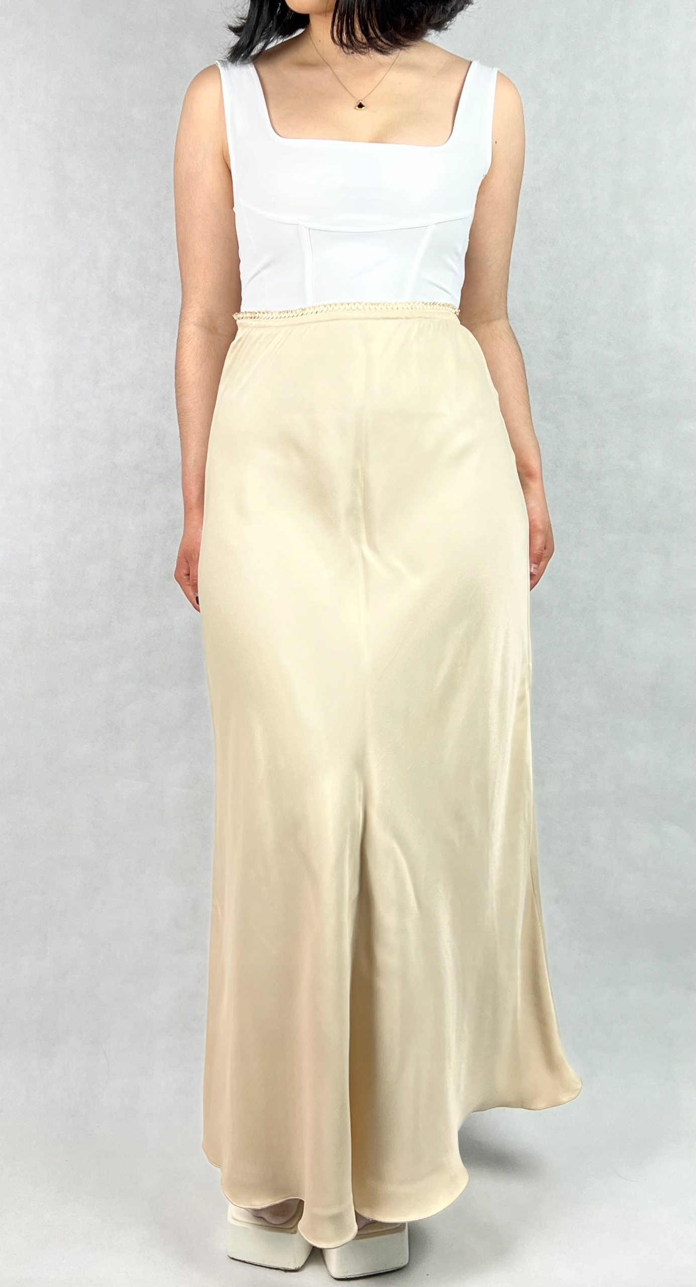 Spódnica jedwabna maxi, trapezowa, wizytowa, damska
