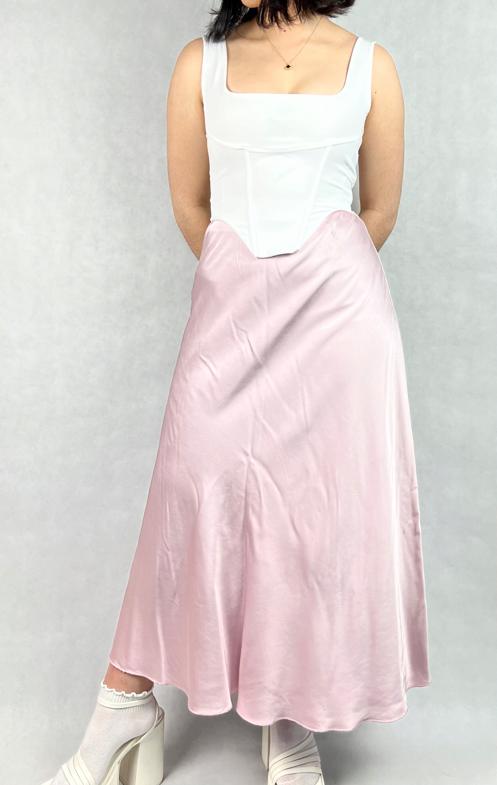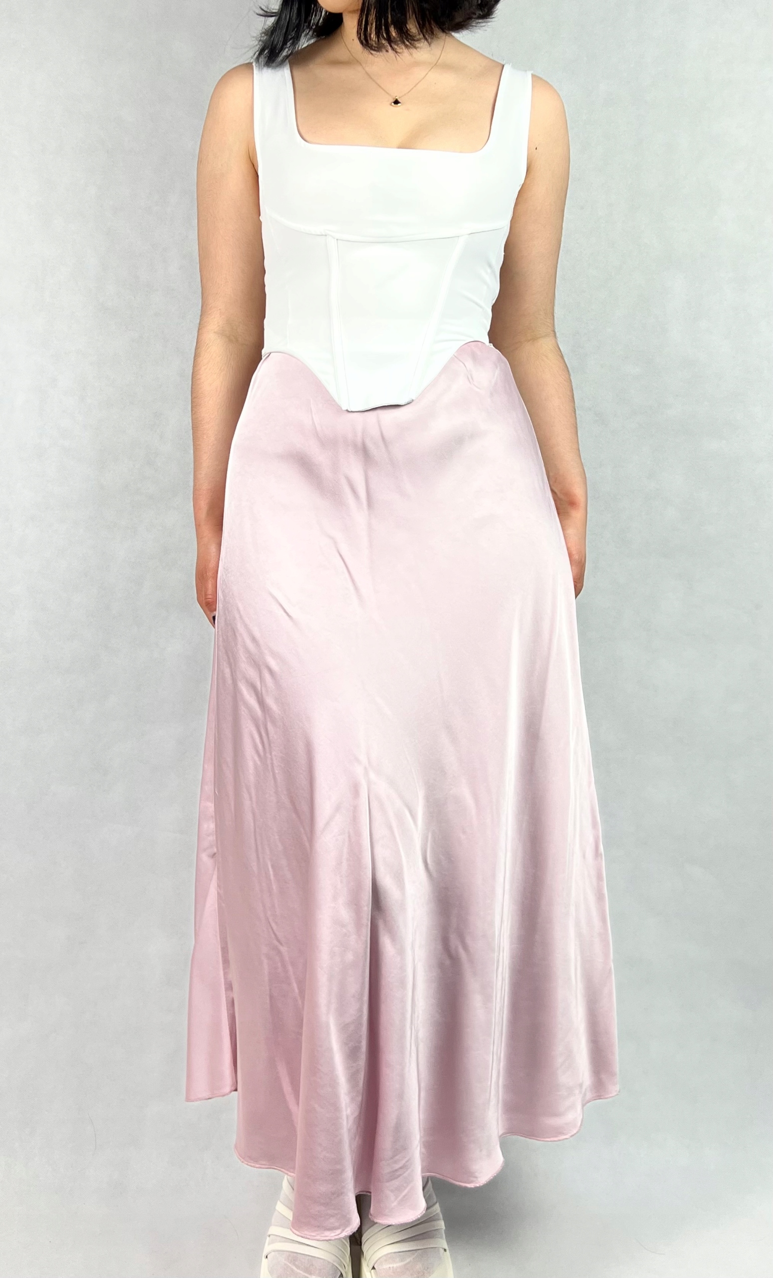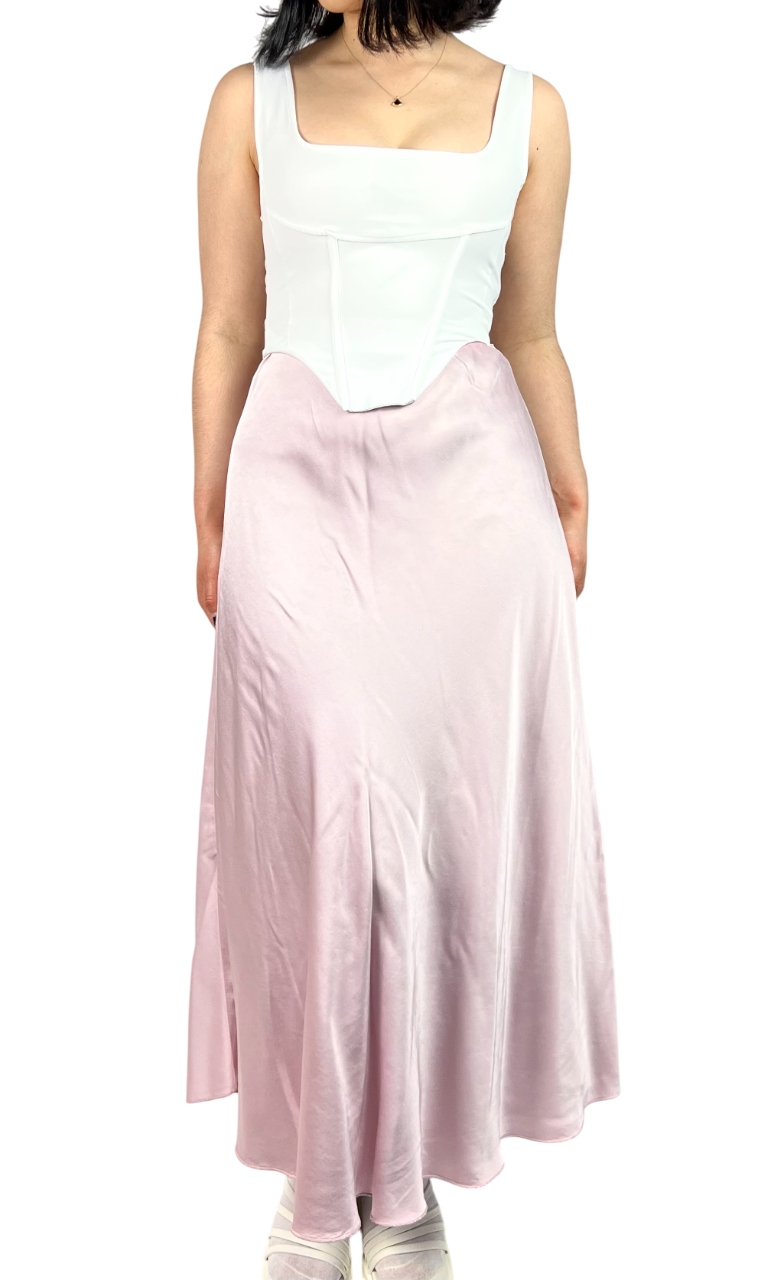 Długa jedwabna spódnica to połączenie elegancji i wyrafinowanego stylu, które sprawdzi się zarówno podczas wyjątkowych okazji, jak i w stylizacjach wieczorowych. Wykonana z wysokiej jakości materiałów, zachwyca lekkością, delikatnym połyskiem oraz jest przyjemna w dotyku. Trapezowy krój z rozkloszowanym dołem nadaje sylwetce lekkości i subtelnie ją wydłuża. W pasie znajduje się elastyczna gumka, która pozwala na wygodne dopasowanie do talii, zapewniając jednocześnie swobodę ruchów. Spódnica pięknie układa się podczas chodzenia, dodając całej stylizacji płynności i klasy. Model maxi sprawdzi się w zestawieniu z elegancką bluzką, topem czy marynarką, tworząc efektowny, kobiecy look. To idealna propozycja dla kobiet ceniących ponadczasową elegancję, wysoką jakość wykonania i komfort noszenia. 70% wiskoza, 30% jedwab.