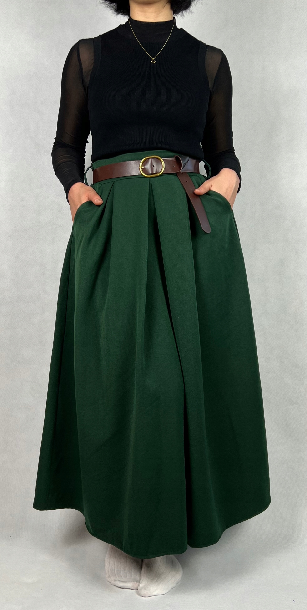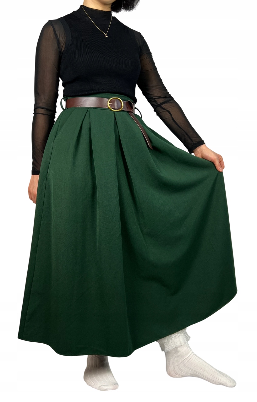 Spódnica damska midi o trapezowym kroju to kwintesencja vintage’owego stylu i codziennej wygody. Rozkloszowany fason nadaje sylwetce lekkości i elegancji, a praktyczne kieszenie dodają funkcjonalności. Gumka w talii zapewnia idealne dopasowanie i komfort noszenia, niezależnie od okazji. Dodatkiem do spódnicy jest pasek, który można stylowo zawiązać, podkreślając talię i dodając całości wyjątkowego charakteru. Doskonale sprawdzi się zarówno w casualowych, jak i bardziej eleganckich stylizacjach. To niezastąpiony element garderoby dla kobiet ceniących klasykę w nowoczesnym wydaniu. 74% poliester, 22% wiskoza, 4% elastan.