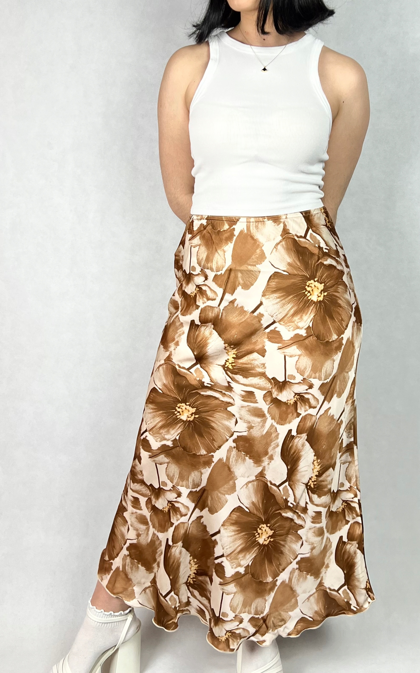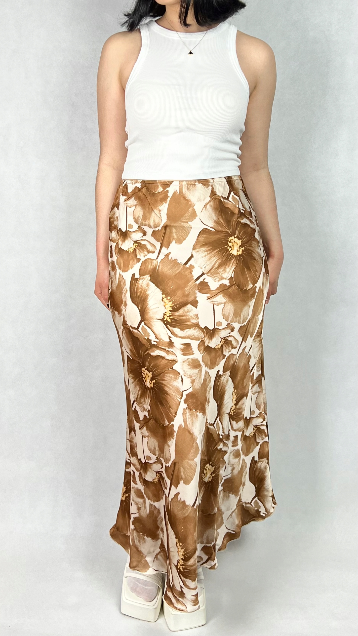 Spódnica maxi w kwiaty, trapezowa, wizytowa