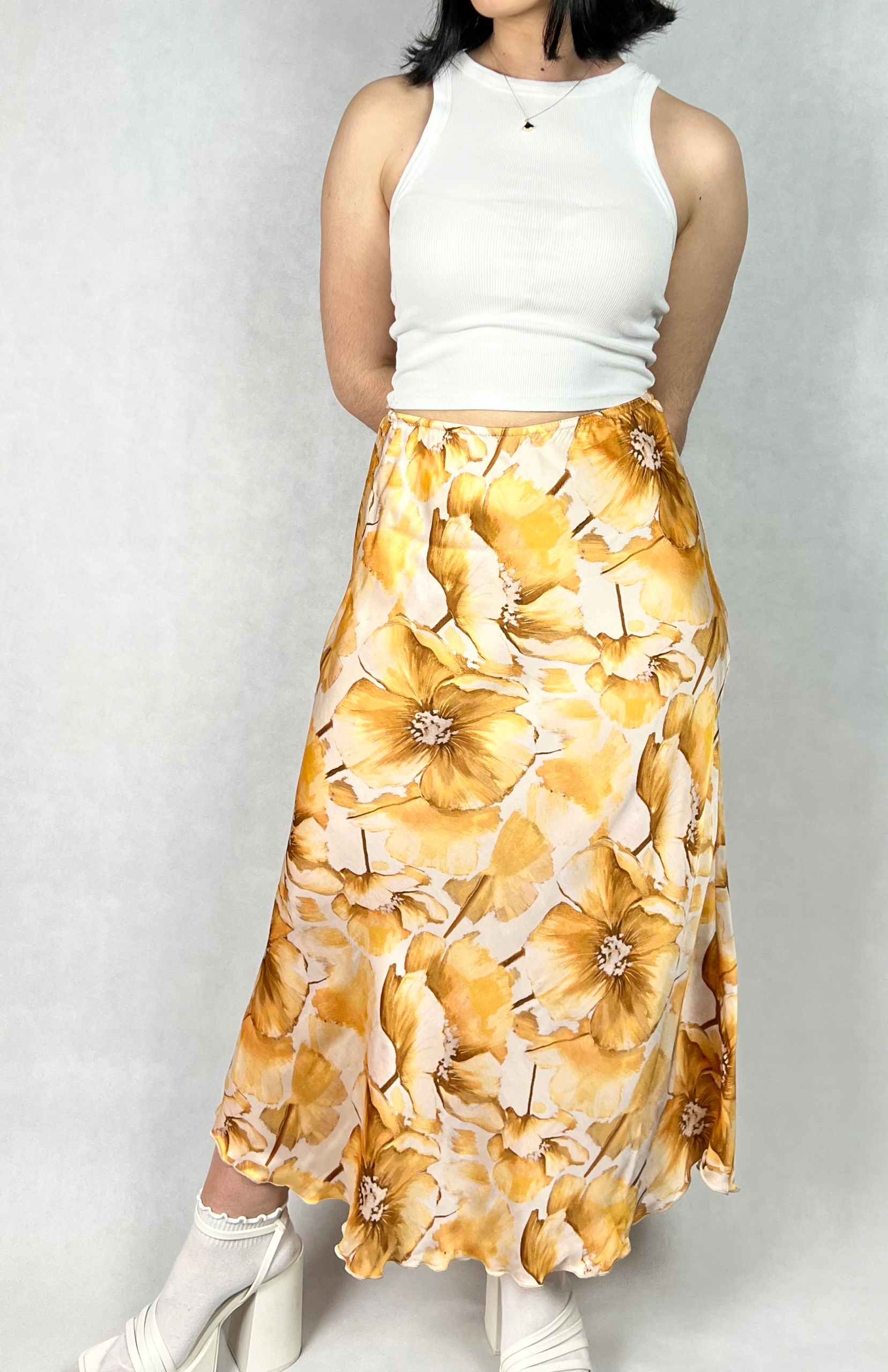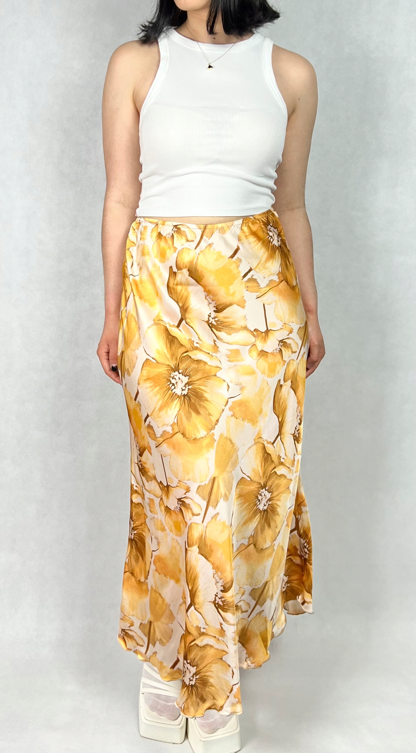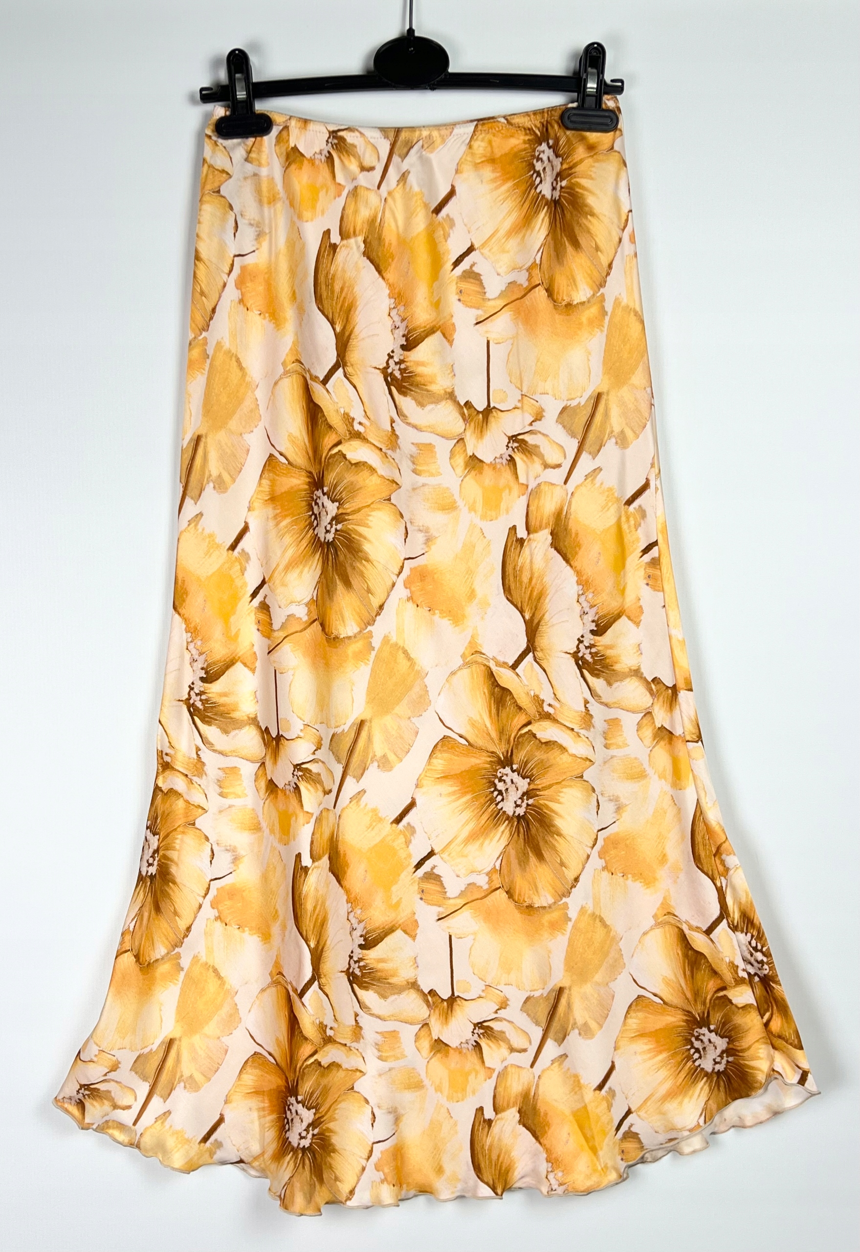 Spódnica maxi w kwiaty, trapezowa, wizytowa
