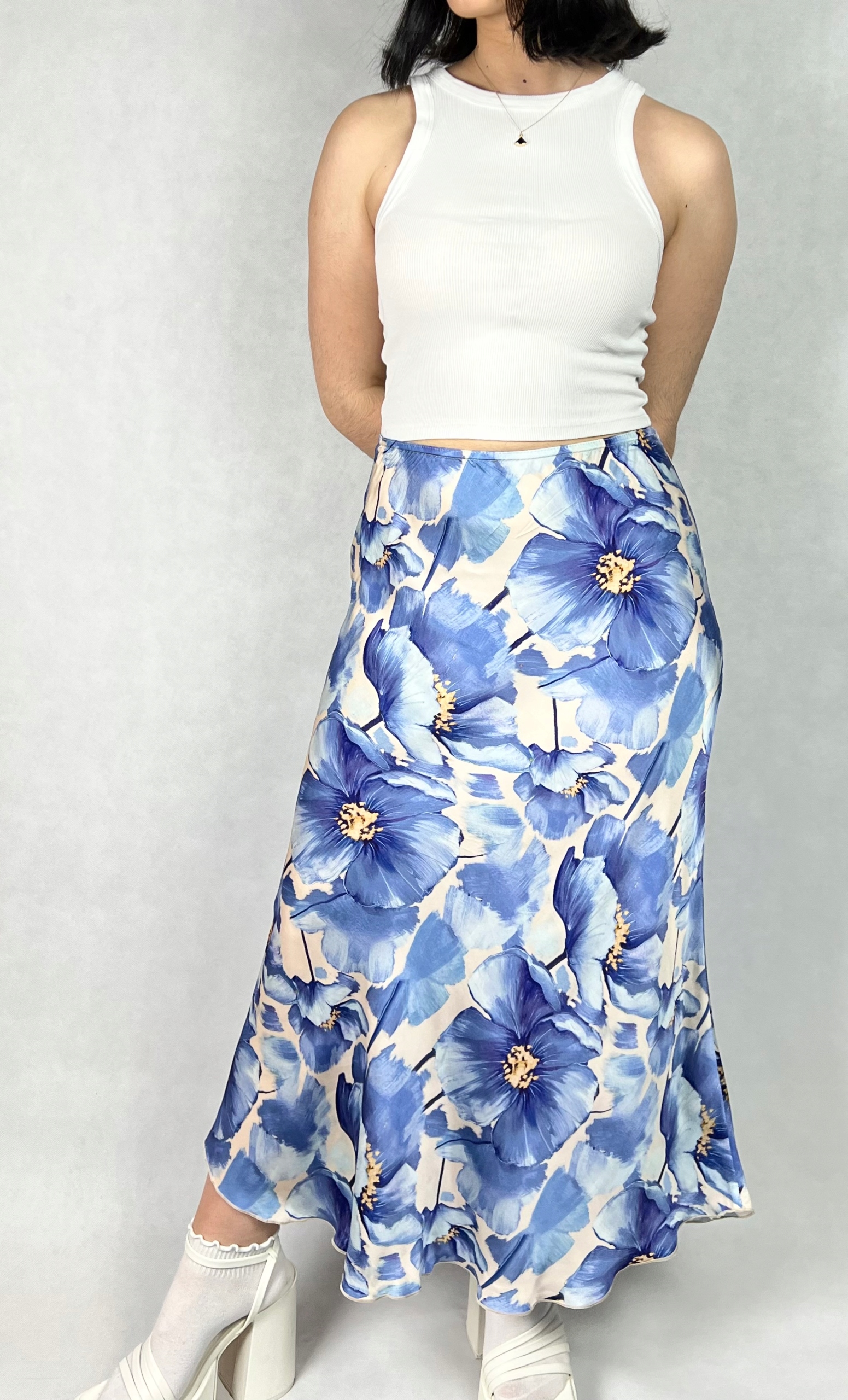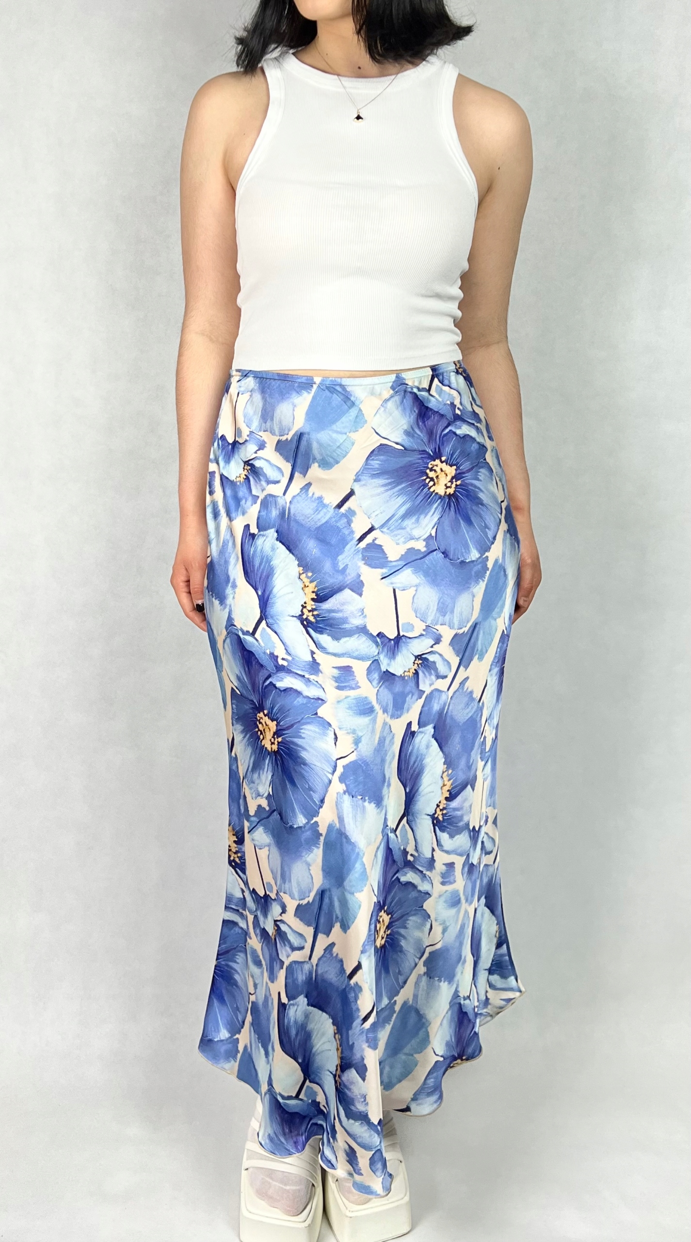 Spódnica maxi w kwiaty, trapezowa, wizytowa