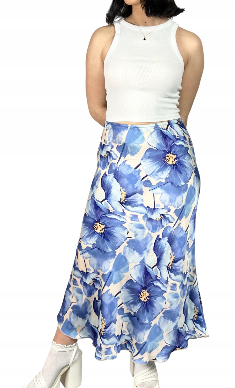 Długa spódnica w kwiaty to połączenie elegancji i wyrafinowanego stylu, które sprawdzi się zarówno podczas wyjątkowych okazji, jak i w stylizacjach wieczorowych. Zachwyca lekkością, delikatnym połyskiem oraz jest przyjemna w dotyku. Trapezowy krój z rozkloszowanym dołem nadaje sylwetce lekkości i subtelnie ją wydłuża. W pasie znajduje się subtelna, elastyczna gumka, która podkreśla elegancki charakter spódnicy i dodaje jej wyjątkowego uroku. Spódnica pięknie układa się podczas chodzenia, dodając całej stylizacji płynności oraz klasy. Model maxi sprawdzi się w zestawieniu z elegancką bluzką, topem czy marynarką, tworząc efektowny, kobiecy look. To idealna propozycja dla kobiet ceniących ponadczasową elegancję, wysoką jakość wykonania i komfort noszenia. 100% wiskoza.