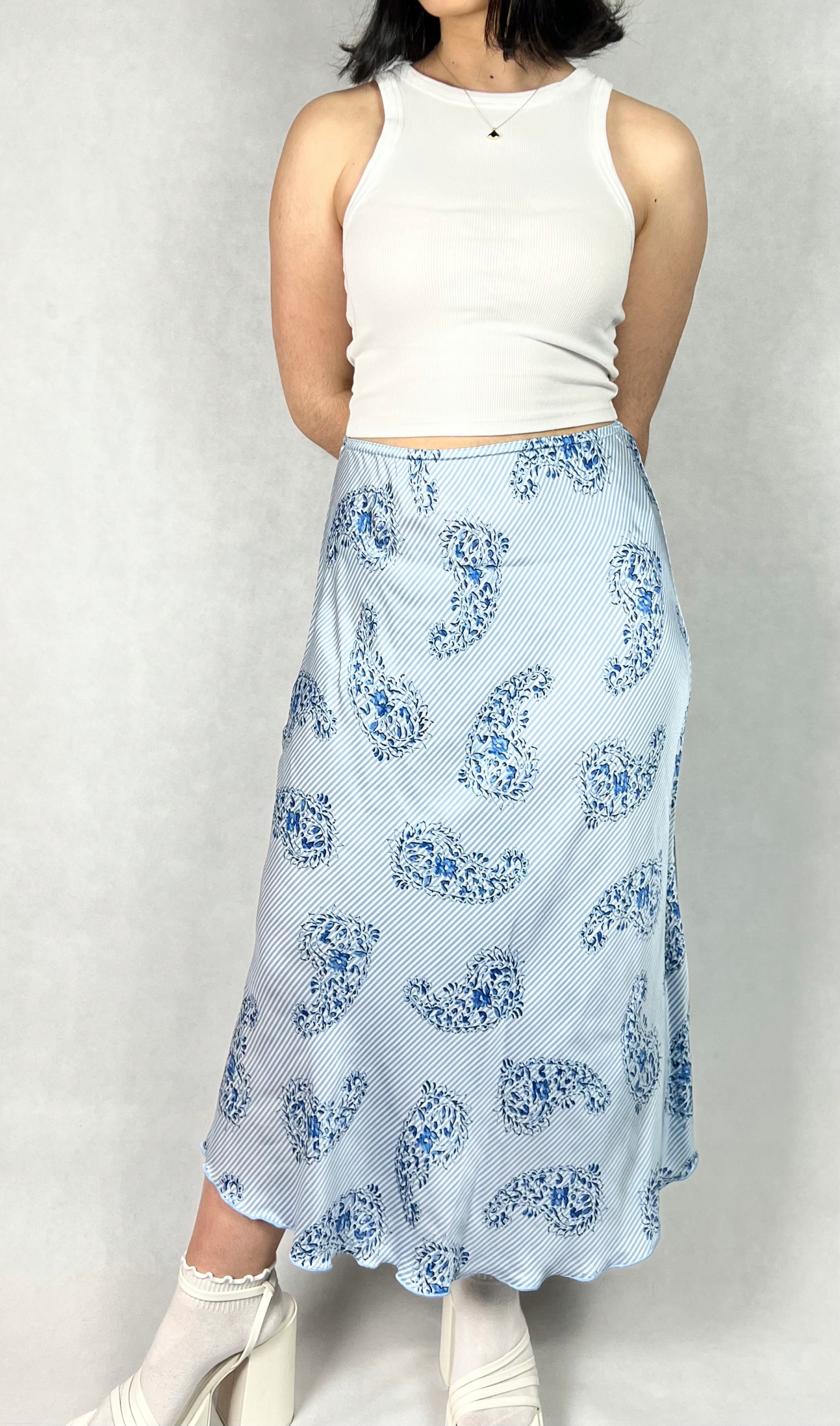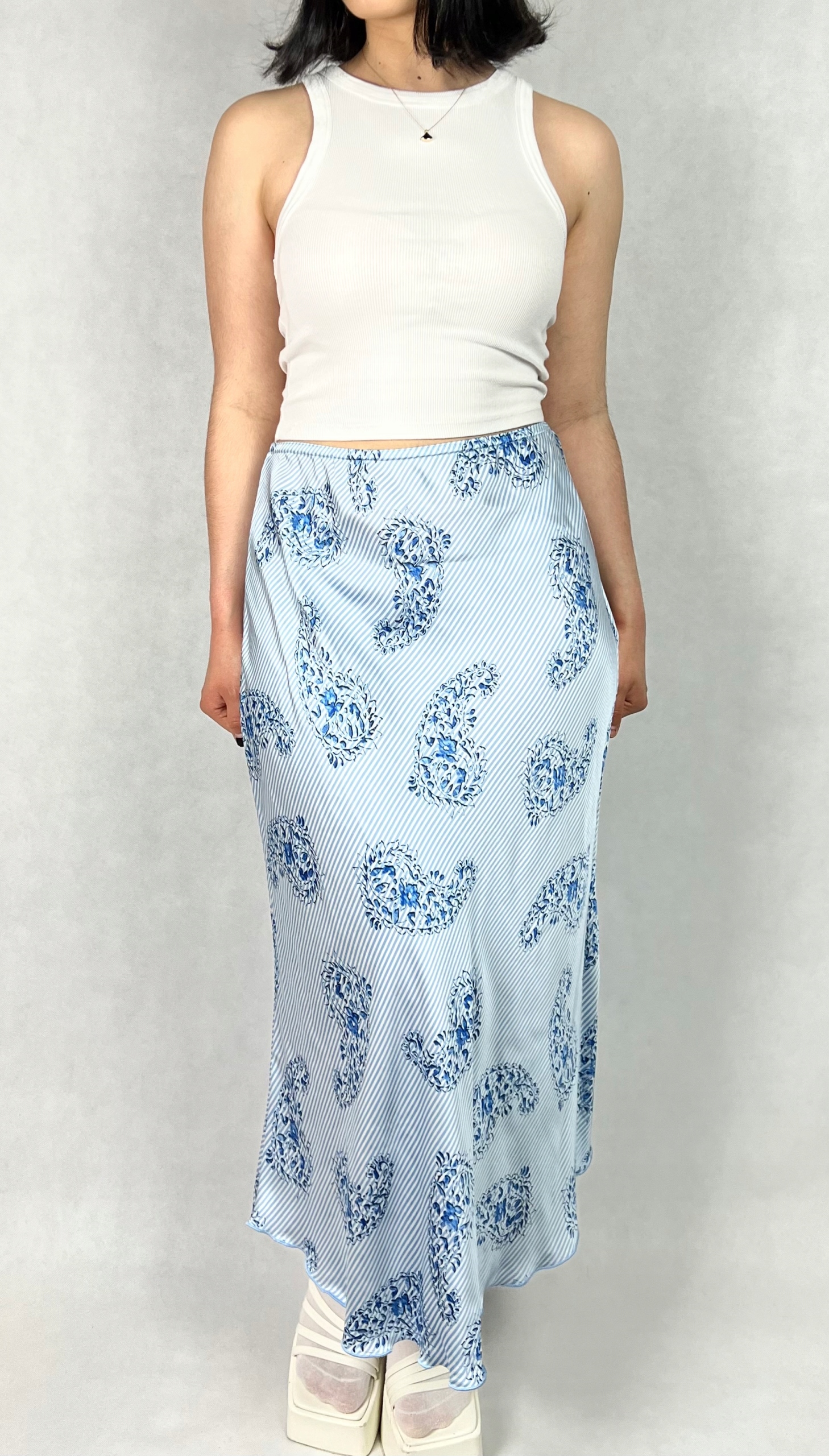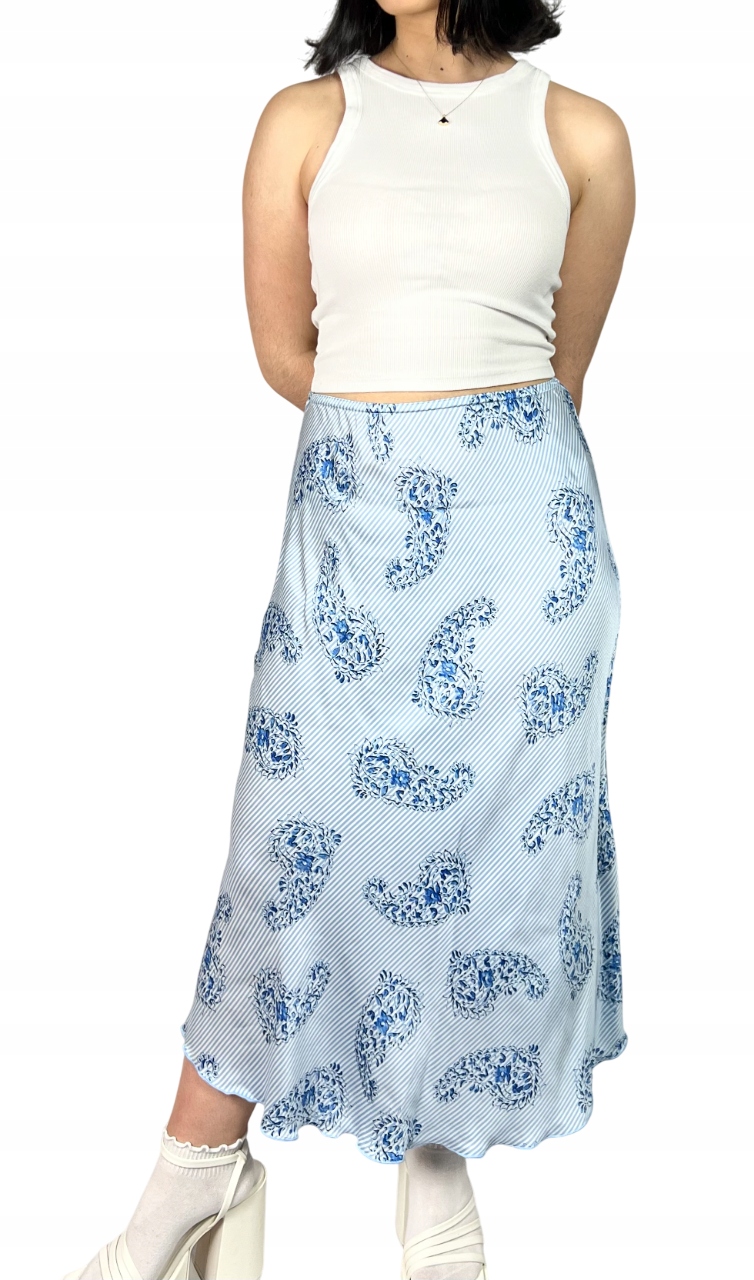 Długa spódnica wzorzysta to połączenie elegancji i wyrafinowanego stylu, które sprawdzi się zarówno podczas wyjątkowych okazji, jak i w stylizacjach wieczorowych. Zachwyca lekkością, delikatnym połyskiem oraz jest przyjemna w dotyku. Trapezowy krój z rozkloszowanym dołem nadaje sylwetce lekkości i subtelnie ją wydłuża. W pasie znajduje się subtelna, elastyczna gumka, która podkreśla elegancki charakter spódnicy i dodaje jej wyjątkowego uroku. Spódnica pięknie układa się podczas chodzenia, dodając całej stylizacji płynności oraz klasy. Model maxi sprawdzi się w zestawieniu z elegancką bluzką, topem czy marynarką, tworząc efektowny, kobiecy look. To idealna propozycja dla kobiet ceniących ponadczasową elegancję, wysoką jakość wykonania i komfort noszenia. 100% wiskoza.