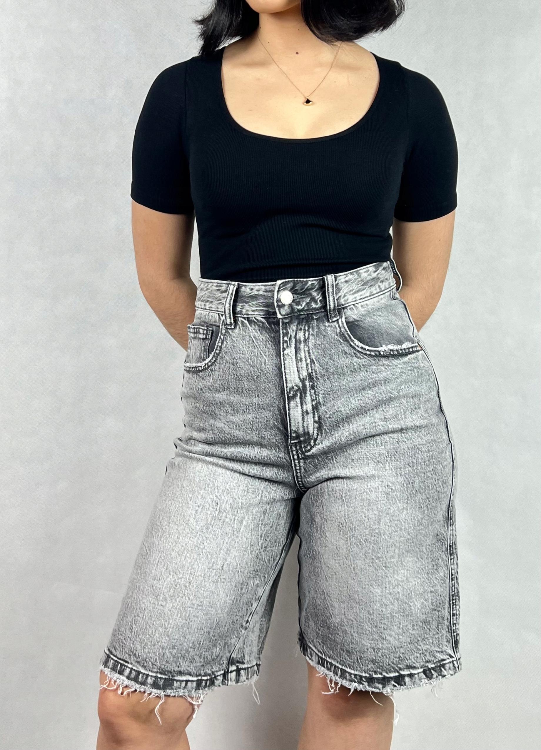 Spodnie jeansowe krótkie z wysokim stanem, rozmiar M