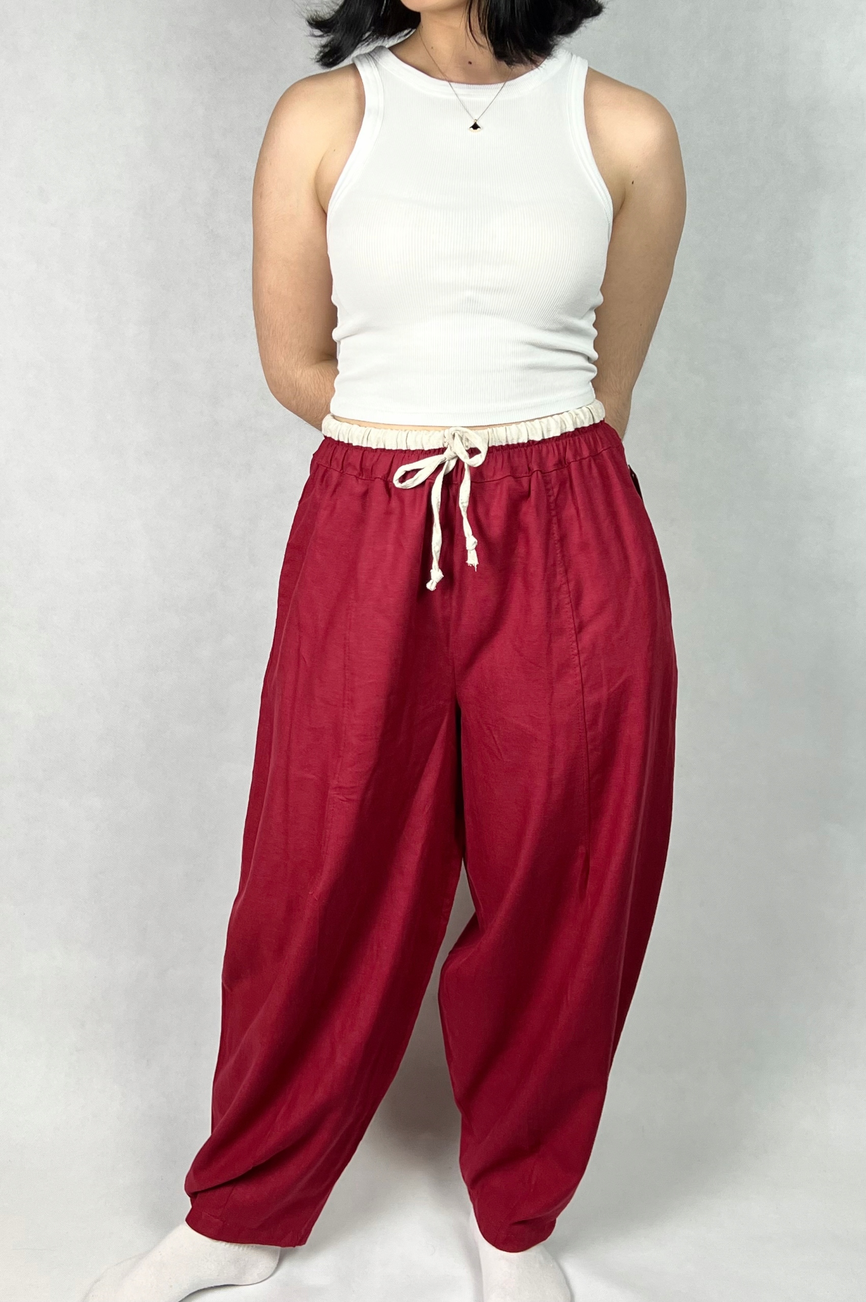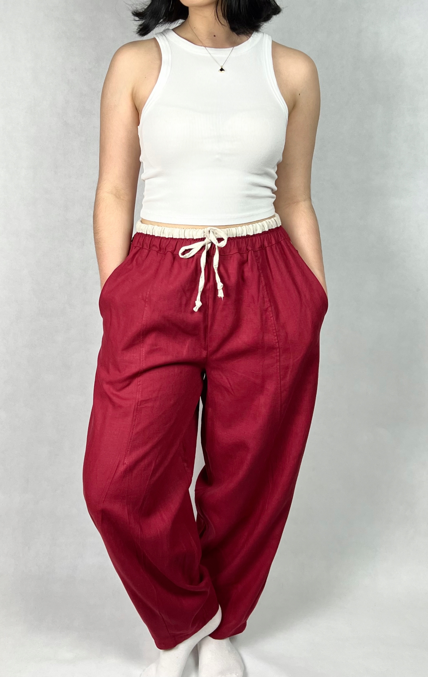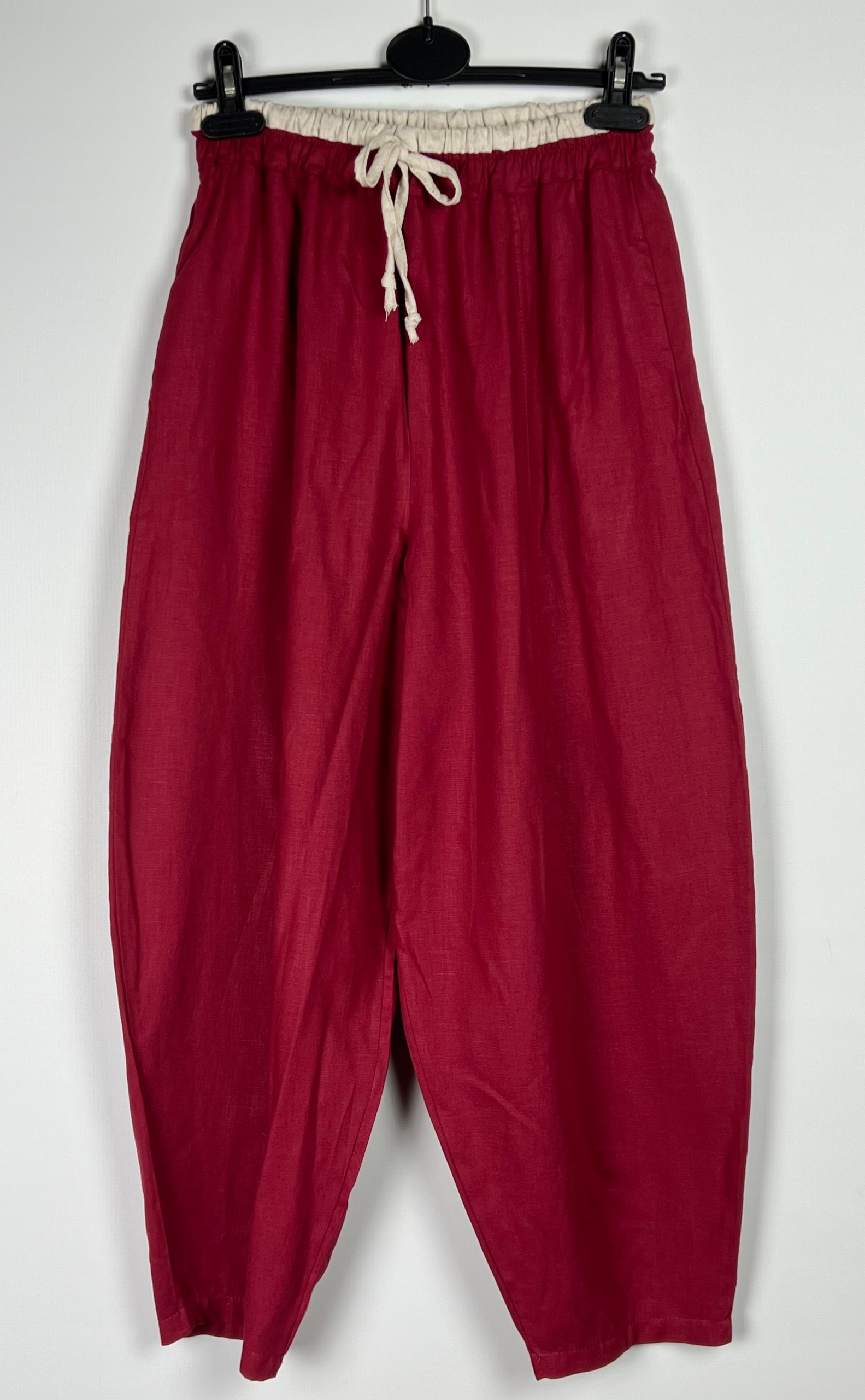Lniane spodnie to idealna propozycja na lato dla osób ceniących komfort i naturalne tkaniny. Wykonane z wysokiej jakości lnu, zapewniają przewiewność i lekkość, co czyni je doskonałym wyborem na ciepłe dni. Luźny fason w stylu casual gwarantuje swobodę ruchów i wygodę podczas codziennego użytkowania. W pasie znajduje się elastyczna gumka, która umożliwia łatwe dopasowanie do sylwetki i zapewnia komfort noszenia przez cały dzień. Praktyczne kieszenie po bokach dodają funkcjonalności, a jednocześnie podkreślają niezobowiązujący, codzienny charakter spodni. Model ten sprawdzi się zarówno na co dzień, jak i podczas wakacyjnych wyjazdów, spacerów czy spotkań w plenerze. 55% len, 45% wiskoza.