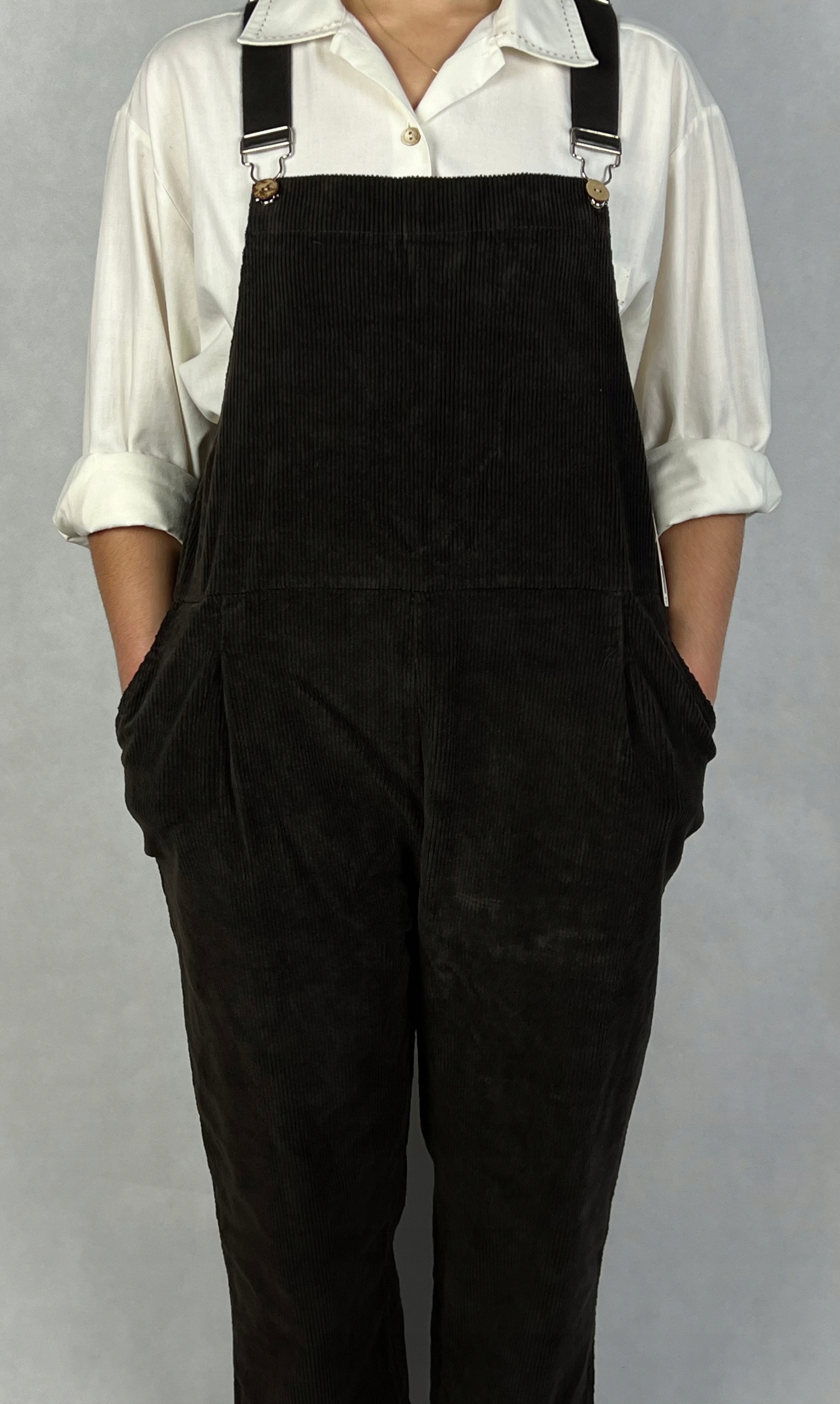 Ogrodniczki damskie, sztruksowe to stylowa kwintesencja vintage’owego uroku i praktyczności. Wykonane z wysokiej jakości bawełny, są miękkie, przewiewne i wygodne, idealne na każdą porę roku. Regulowane ramiączka pozwalają na idealne dopasowanie, a kieszenie dodają nie tylko funkcjonalności, ale i charakterystycznego retro stylu. Ponad kieszeniami z boku ogrodniczek znajduje się gumka, która nadaje im elastyczność, zapewniając swobodę ruchów. Klasyczny sztruksowy materiał nadaje im eleganckiego, a zarazem casualowego wyglądu, świetnie komponującego się z t-shirtami, swetrami czy koszulami. 97% bawełna, 3% elastan.