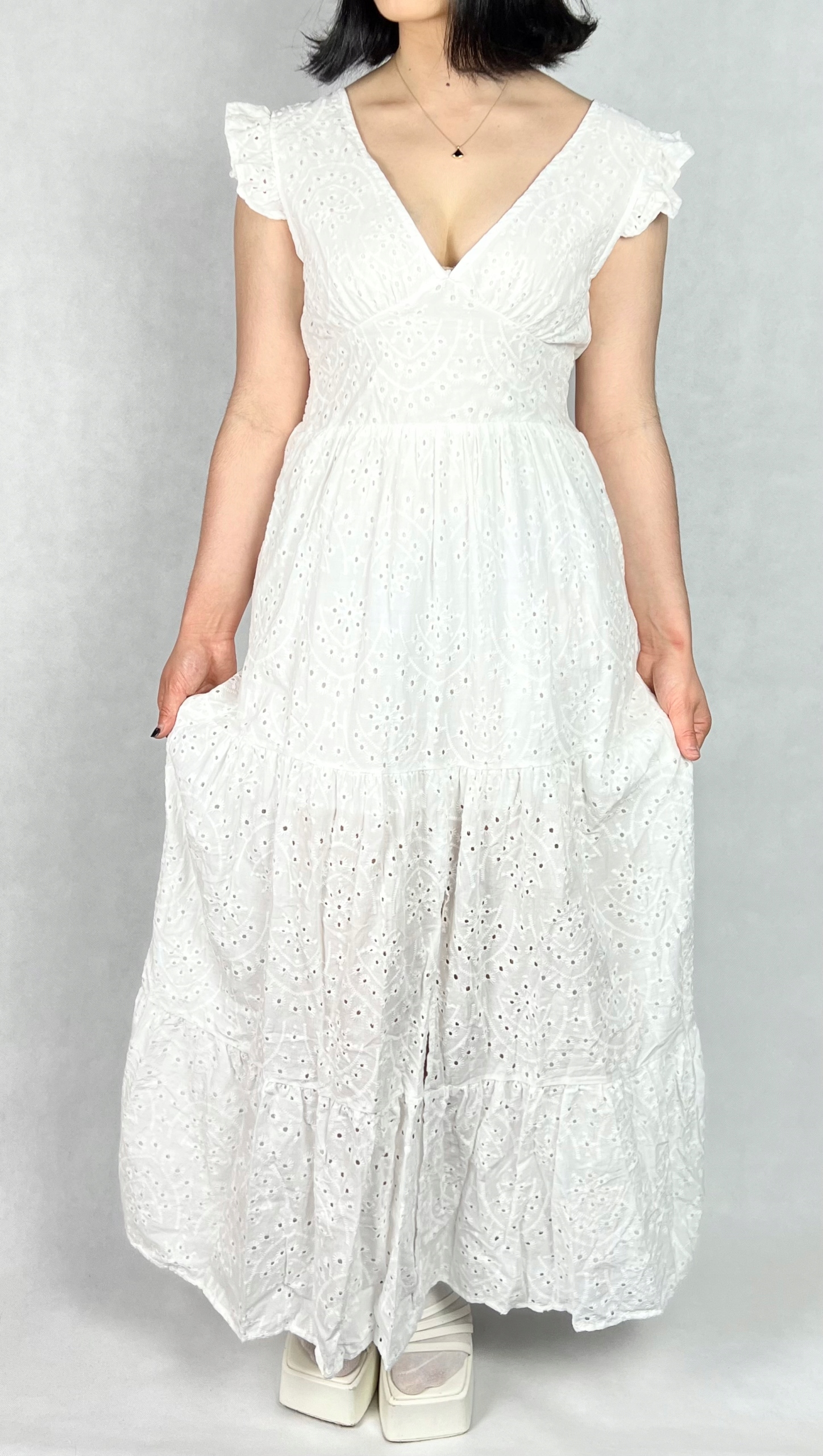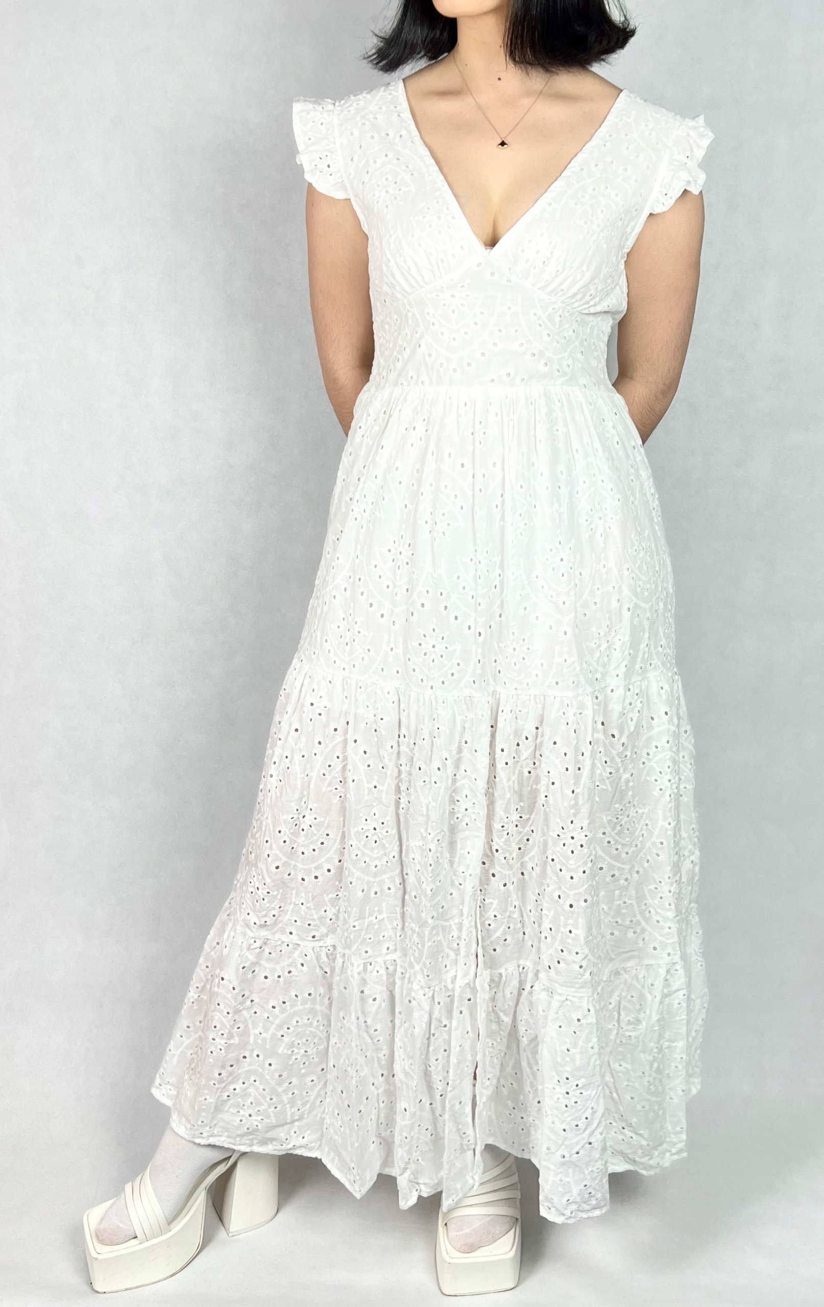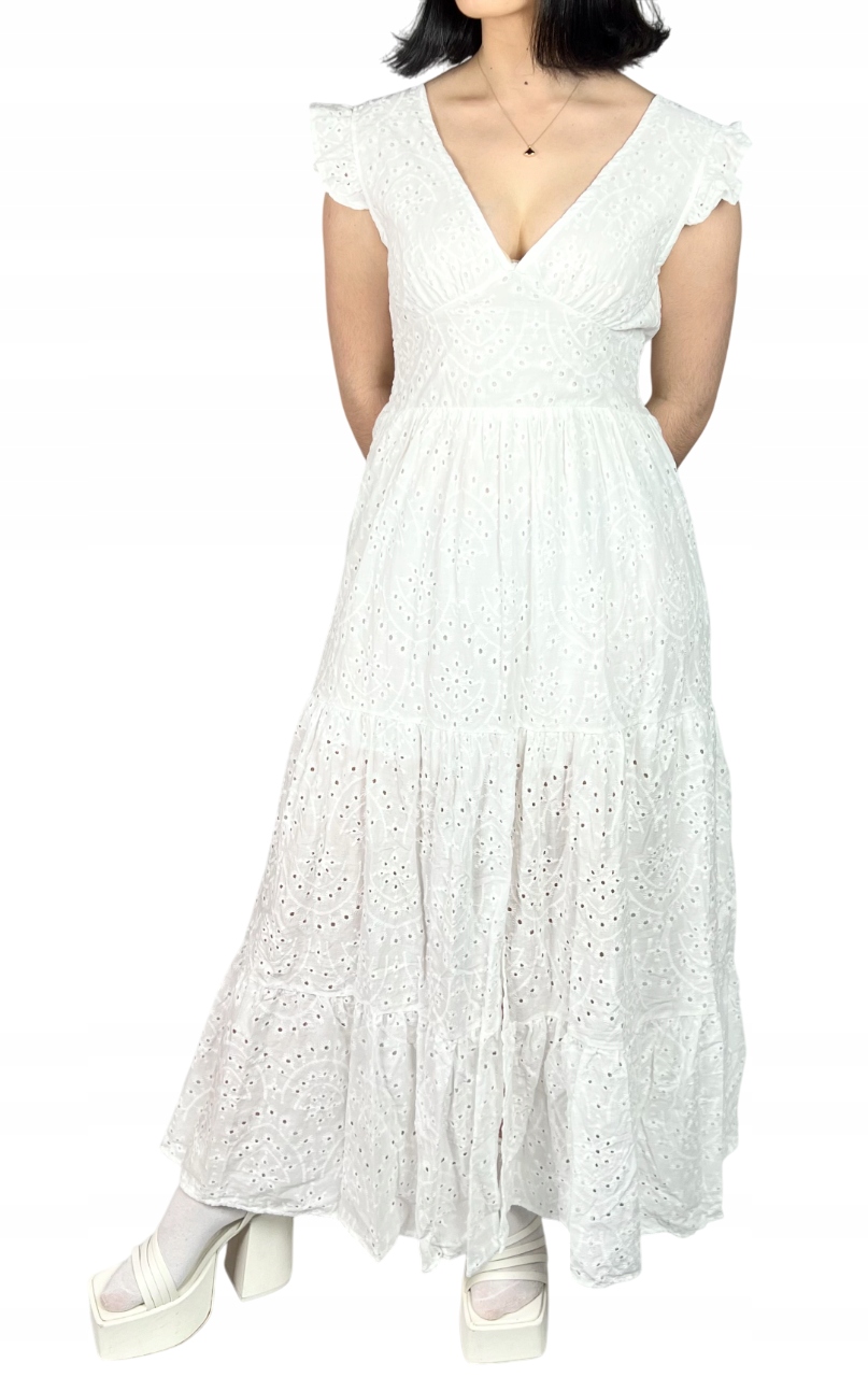 Sukienka bawełniana maxi, ażurowa, boho