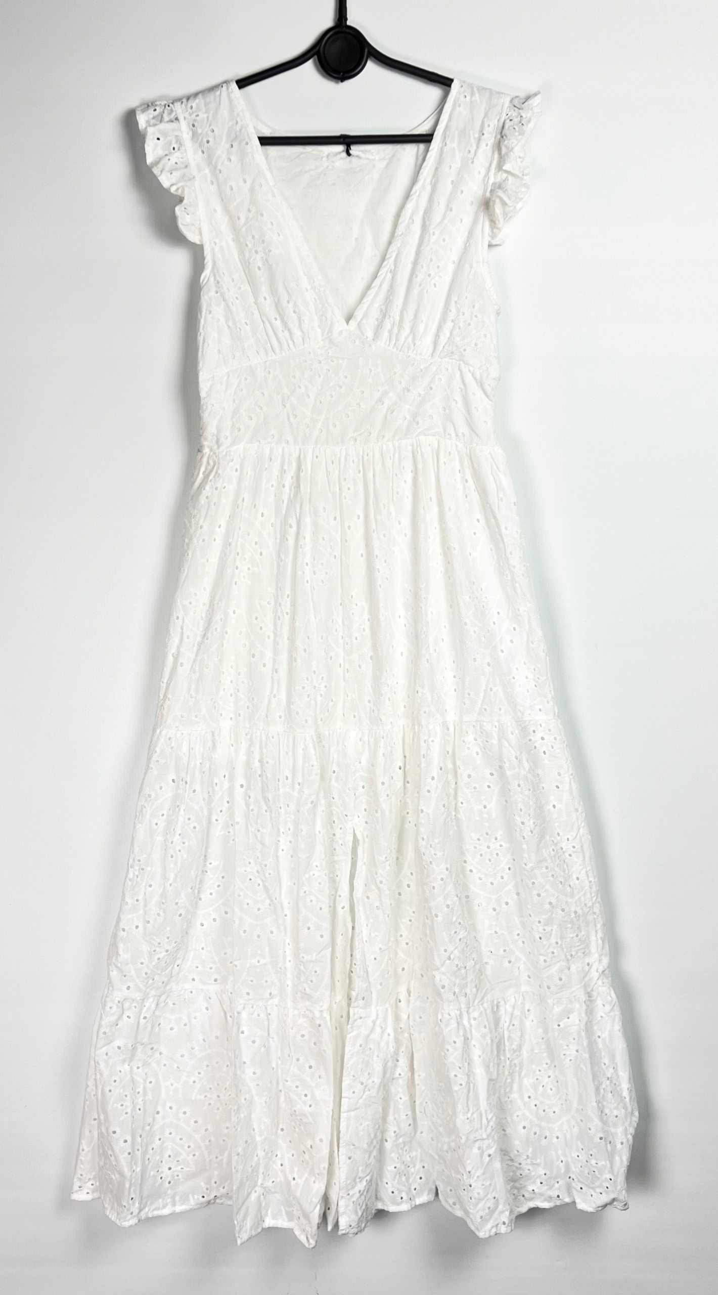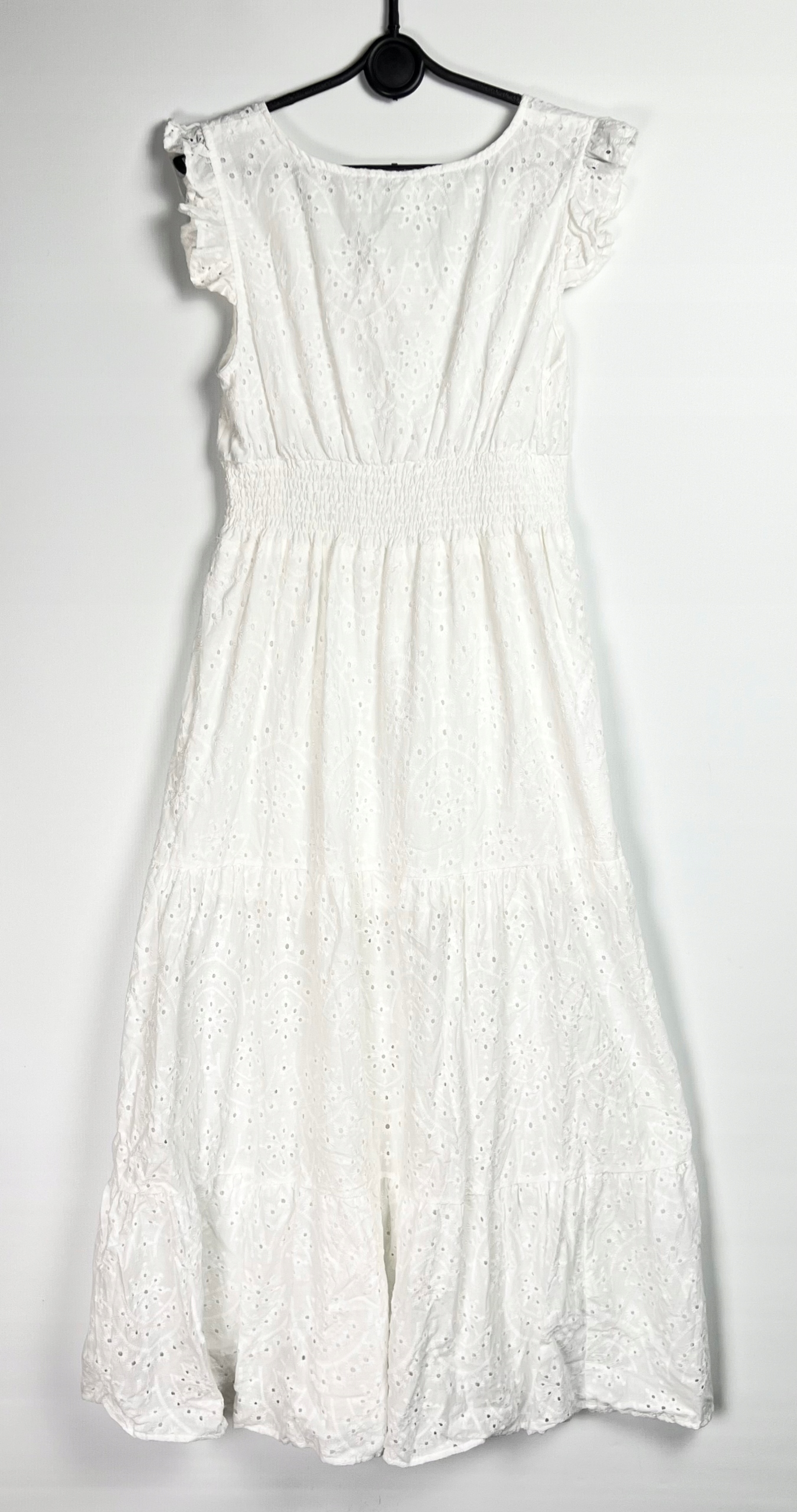 Bawełniana sukienka ażurowa w stylu boho to idealna propozycja na letnie dni. Wykonana z naturalnego, przewiewnego materiału zapewnia komfort noszenia nawet w największe upały. Ażurowy wzór dodaje lekkości i subtelności, a rozkloszowany krój pięknie układa się podczas ruchu, podkreślając sylwetkę. Z przodu, na środku sukienki, znajduje się rozcięcie, które dodaje kobiecego charakteru. Sukienka posiada wszytą bawełnianą podszewkę, co gwarantuje wygodę i zapobiega prześwitywaniu materiału. Na plecach wszyta jest elastyczna gumka, która ułatwia dopasowanie do sylwetki, zapewniając jednocześnie swobodę ruchów. To model, który świetnie sprawdzi się zarówno na co dzień, jak i podczas wakacyjnych wyjazdów czy letnich spotkań. Sukienka doskonale komponuje się z dodatkami w stylu boho – kapeluszami, plecionymi torbami i sandałami. Sukienka: 100% bawełna. Podszewka: 100% bawełna.