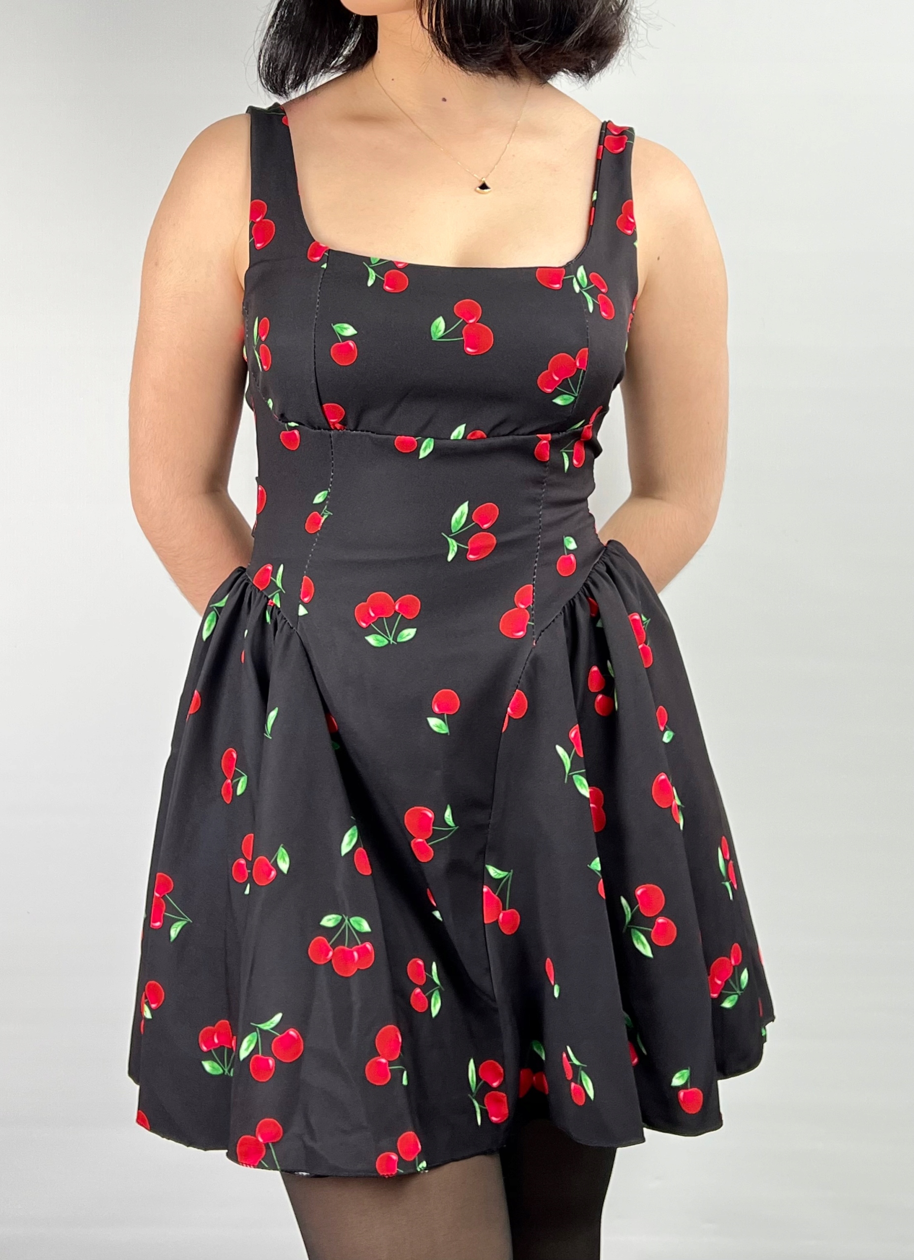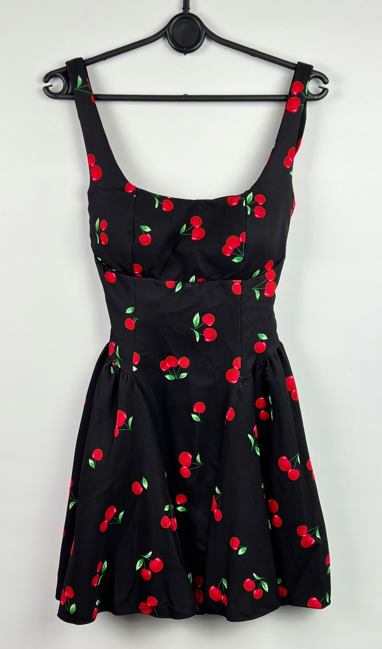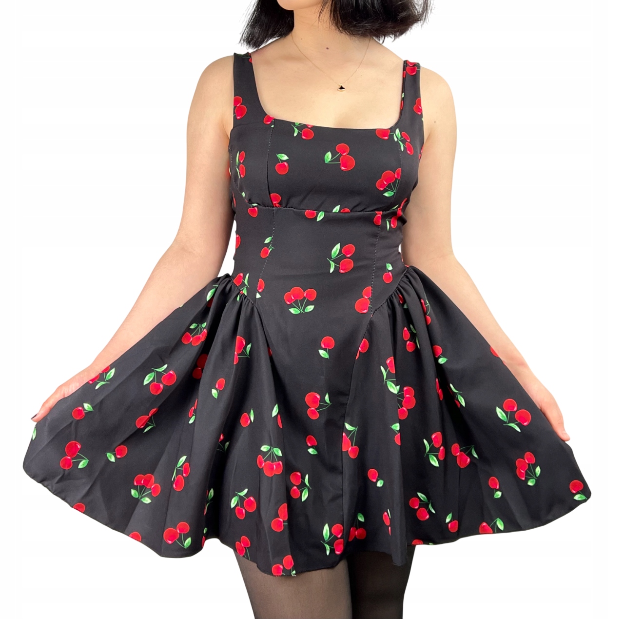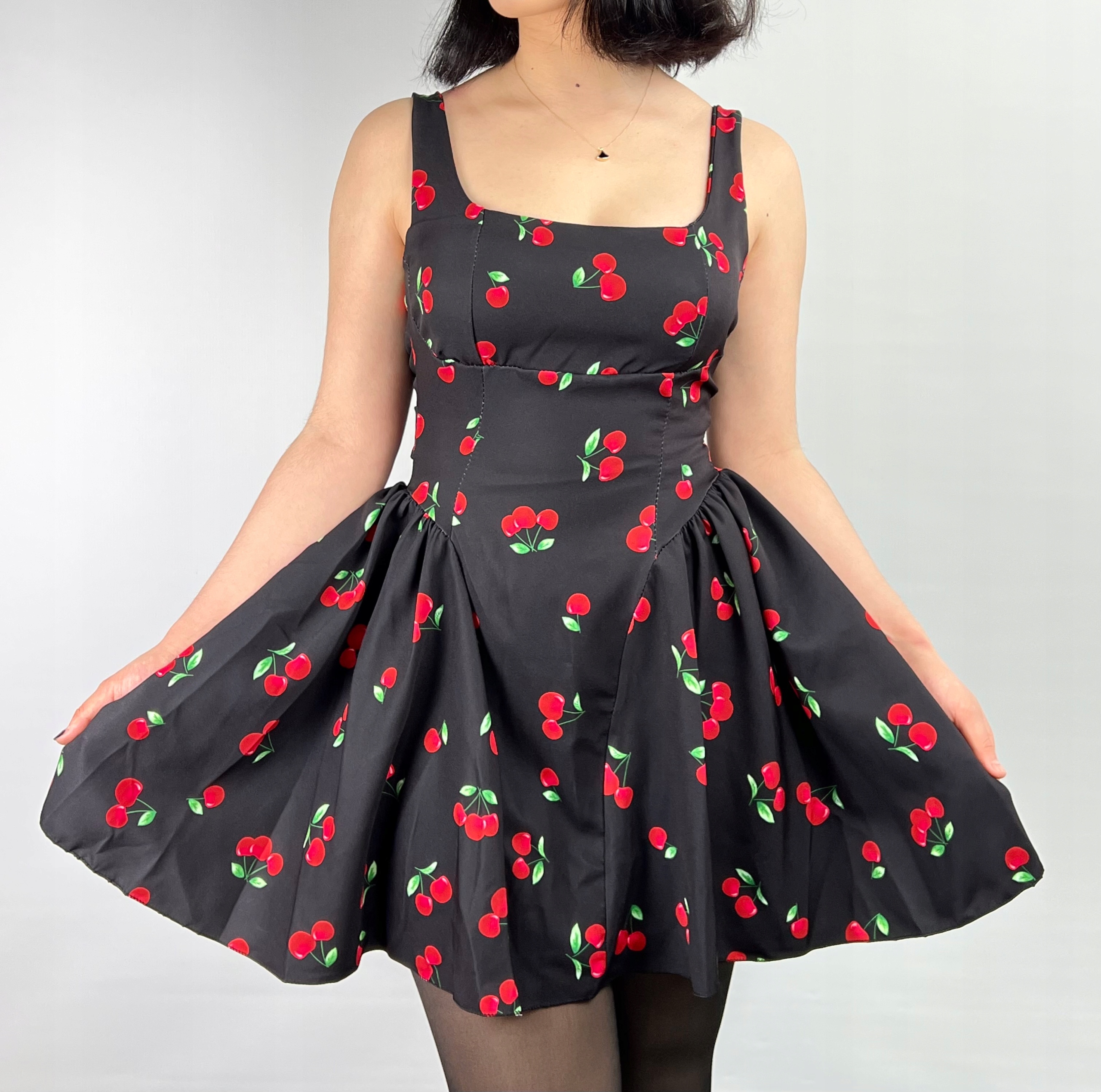 Sukienka na ramiączkach w wiśnie, koktajlowa, pin-up