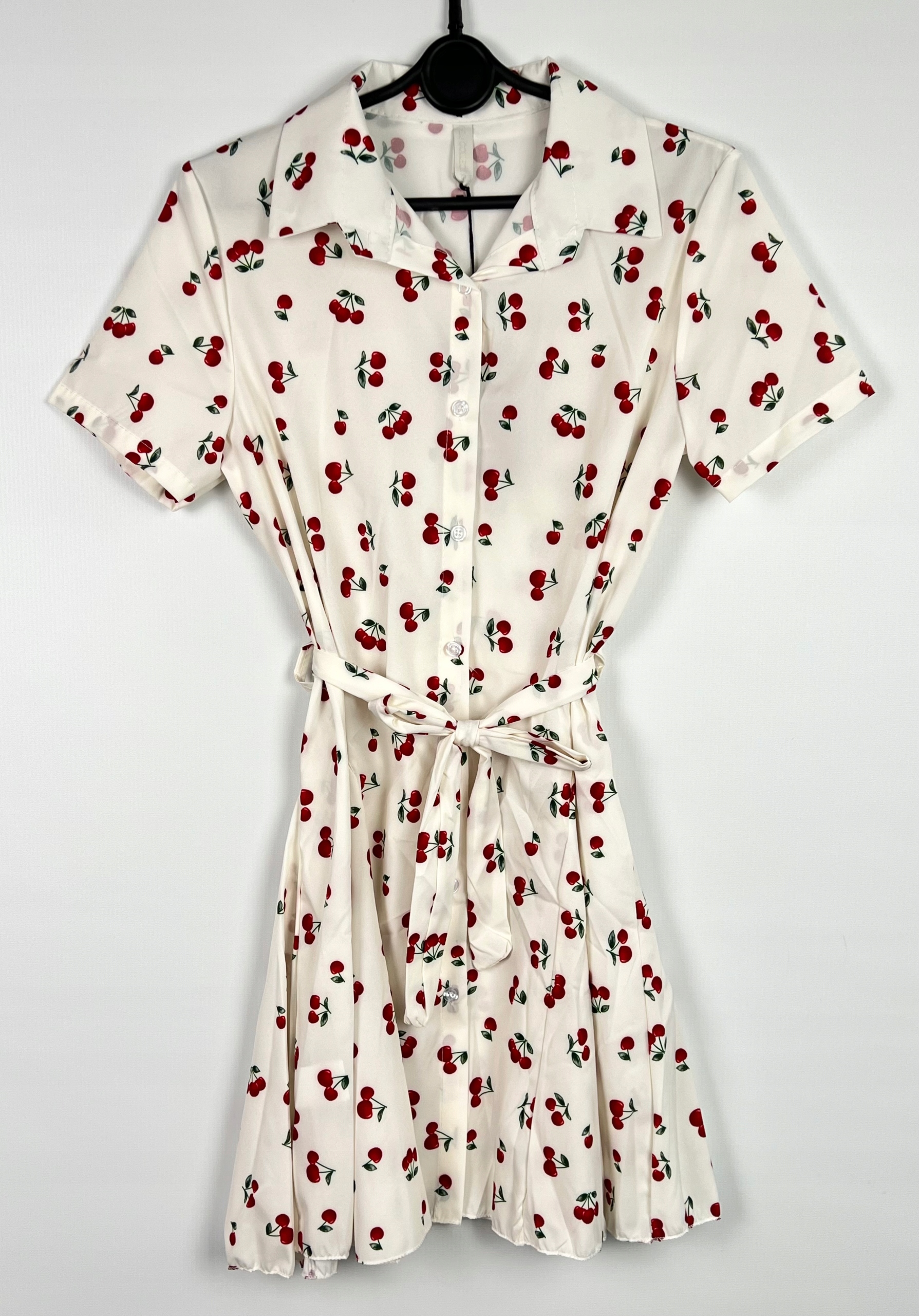 Sukienka pin-up, koktajlowa z krótkim rękawem i kołnierzem to propozycja dla kobiet, które cenią klasyczne fasony inspirowane modą retro. Rozkloszowany krój pięknie podkreśla talię, nadając sylwetce lekkości i elegancji. Sukienka zapinana jest z przodu na guziki, a dodatkowe wiązanie pozwala zawiązać kokardkę, co nie tylko zwiększa komfort noszenia, ale też subtelnie akcentuje talię i dodaje kobiecego uroku. To idealny wybór na specjalne okazje – wesela, przyjęcia, randki czy sesje zdjęciowe, ale również jako element codziennego stroju dla miłośniczek stylu vintage. Materiał, z którego została wykonana, jest przyjemny w dotyku i lekki, doskonale sprawdzający się na lato. Ten ponadczasowy model świetnie komponuje się z butami na obcasie, balerinami czy klasycznymi dodatkami w stylu lat 50., tworząc pełną wdzięku i klasy stylizację. 96% poliester, 4% elastan.
