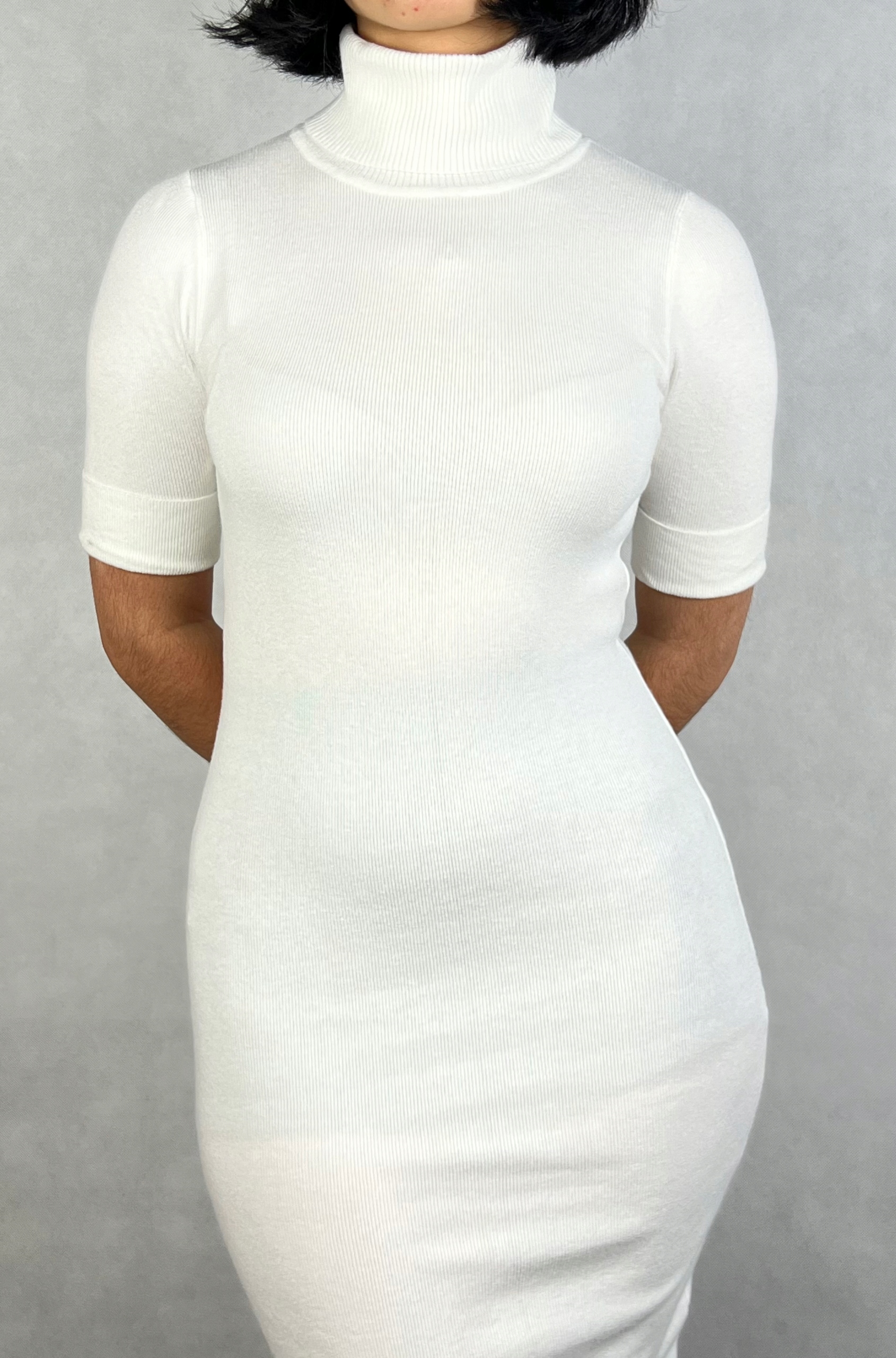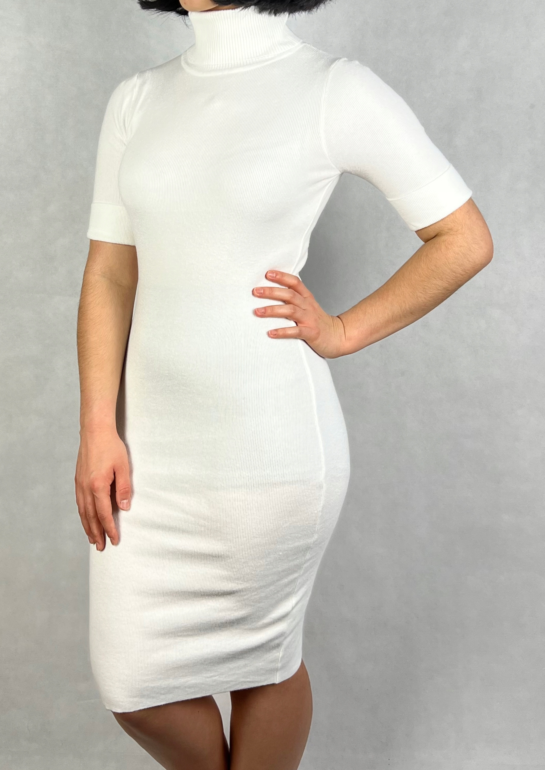 Elegancka sukienka swetrowa z golfem to idealne połączenie stylu i wygody. Dopasowany krój podkreśla sylwetkę, a elastyczny materiał zapewnia doskonałe dopasowanie do różnych rozmiarów. Sukienka wykonana jest z miękkiej, rozciągliwej dzianiny, która otula ciało, zapewniając komfort noszenia przez cały dzień. Golf dodaje jej szyku, sprawiając, że świetnie sprawdzi się zarówno jako strój na co dzień, jak i na wieczorne wyjście. Uniwersalny design pozwala łatwo zestawiać ją z dodatkami, tworząc stylizacje na różne okazje. 88% wiskoza, 12% nylon.